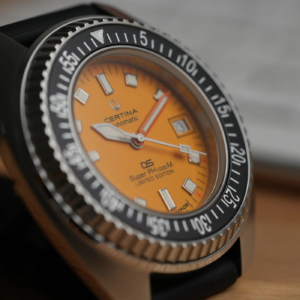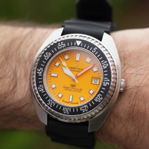 Sarà magari colpa del periodo poco propizio per i diver, almeno nel nostro emisfero, ma il Certina DS Super PH1000 presentato lo scorso novembre è passato un po’ in sordina. Eppure ha un scheda tecnica da primo della classe: è la riedizione abbastanza fedele di un modello estremamente iconico degli anni ’70 ed è proposto ad un prezzo di listino molto aggressivo. Unica nota dolente? Il marchio non è ufficialmente distribuito in Italia e, anche se questo è un problema di per sé marginale, è poco comprensibile il senso di questa scelta strategica da parte di Gruppo Swatch. In fondo negli altri Paesi europei in cui invece Certina ha una rete di vendita ufficiale, sono presenti anche tutti gli altri brand del gruppo nella stessa fascia di prezzo (Tissot, Mido e Hamilton). La speranza è che Certina prima o poi torni ad essere distribuita anche nel nostro paese, soprattutto perché negli ultimi anni sta dimostrando grandi capacità proprio nel segmento dei diver. Ma non perdiamo altro tempo, scopriamo insieme il DS Super PH1000.