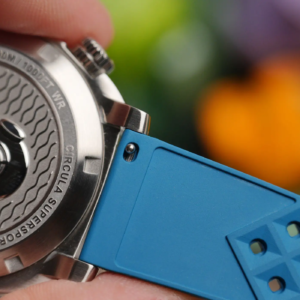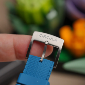 Il Circula SuperSport può essere acquistato con bracciale in acciaio o cinturino in gomma. Nel primo caso abbiamo a che fare con un accessorio che trasmette grande solidità, con maglie ad H spesse e tenute insieme da perni a vite. Gli elementi centrali di raccordo sono lucidi e quindi purtroppo tendono a far risaltare un po’ troppo i graffi superficiali. La clasp è comune a quella utilizzata da tanti altri marchi, ma ha il vantaggio di essere solida e pratica grazie ai 6 fori di microregolazione. Se si vuole puntare alla maggior praticità data dalla gomma, ci sono dei cinturini tipo tropic di buona qualità con fibbia personalizzata e, in questo caso, con una colorazione che richiama quella del quadrante. Su bracciale e cinturino sono presenti anse a sgancio rapido, quindi non è necessario utilizzare attrezzi per passare da uno all’altro.