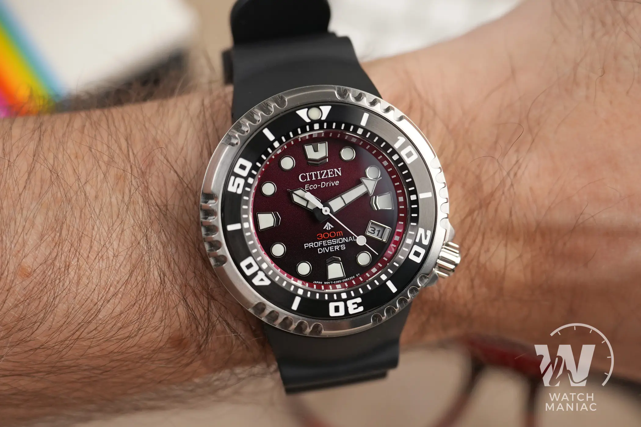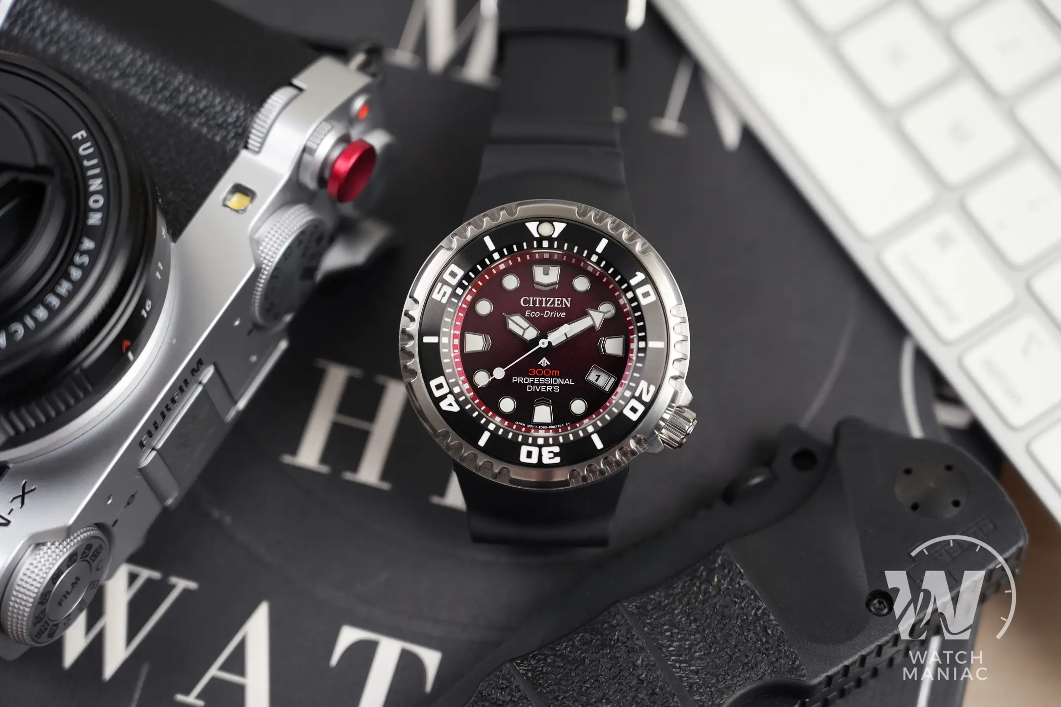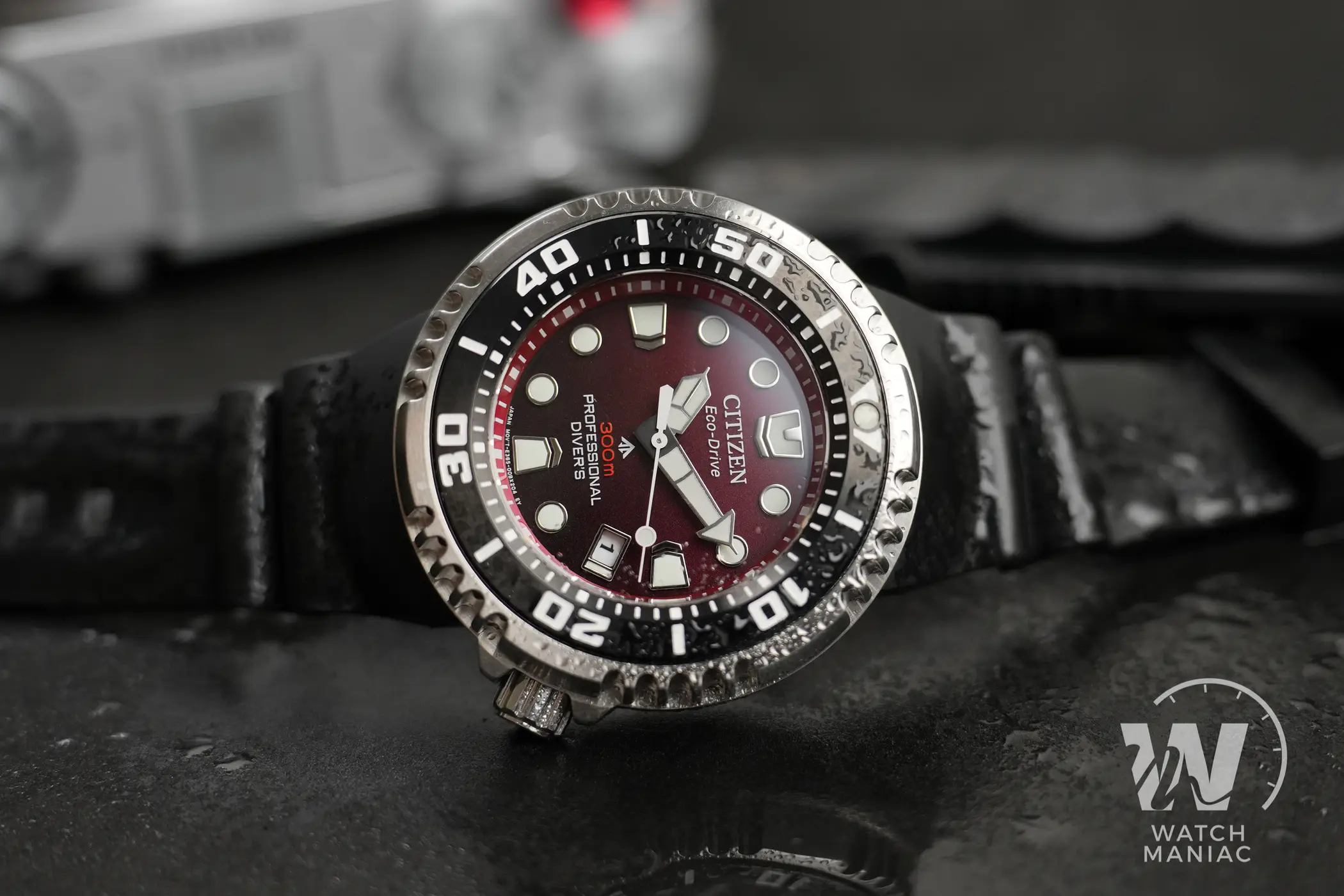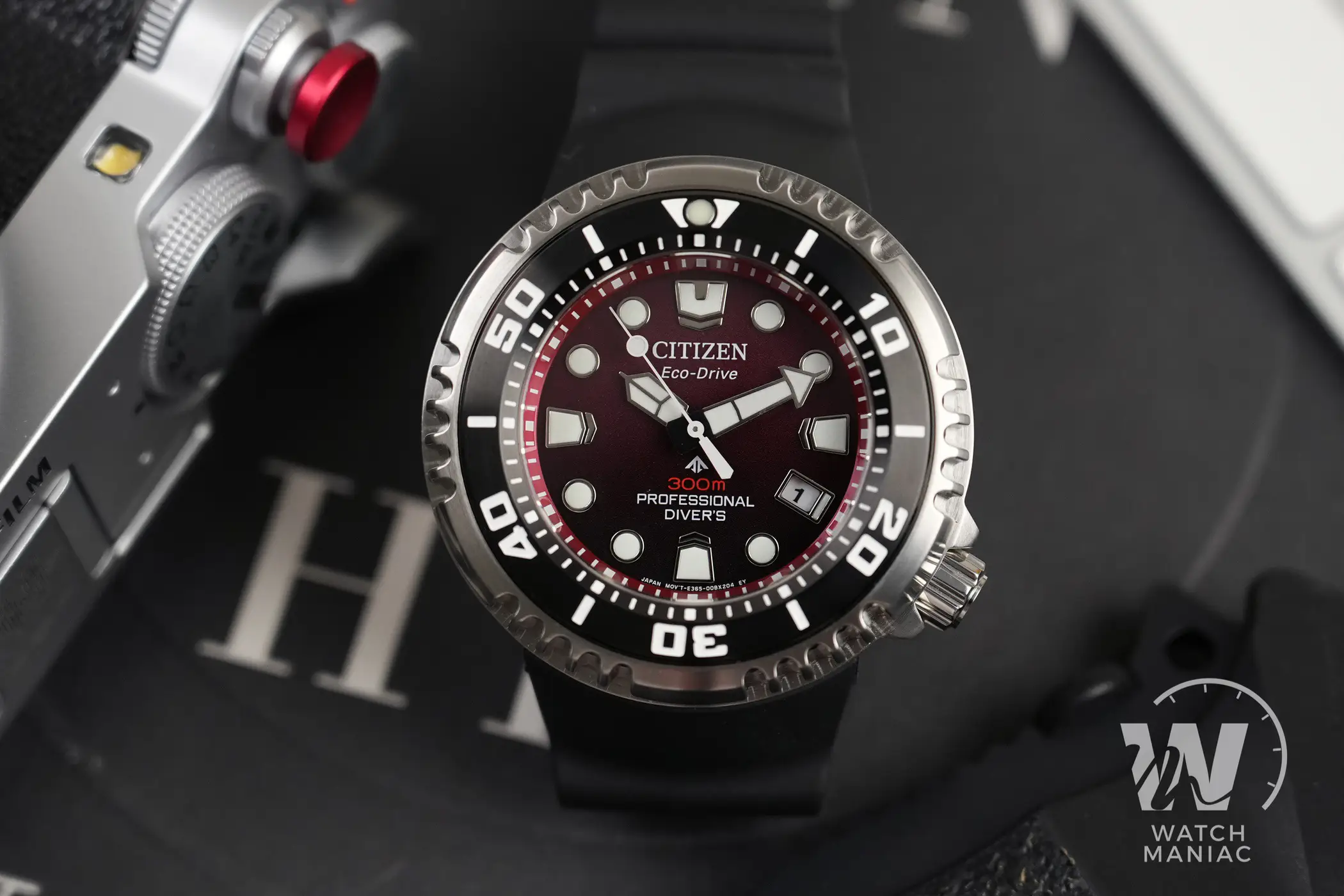Citizen è senza dubbio un punto di riferimento per la produzione di orologi pensati per chi fa immersioni. Il Promaster Eco Drive Professional Diver’s 300m è una sintesi perfetta dello stile del marchio giapponese, con elementi estetici in comune con vari modelli, come ad esempio l’assenza delle anse sporgenti vista sul cosiddetto “Ecozilla” o le evidenti scanalature antiscivolo della ghiera che ricordano quelle dei Promaster NY0040. Sono poi molte le somiglianze con gli Eco Drive Diver’s 200m, di cui i BN-1024 risultano essere gli eredi diretti, ma con caratteristiche tecniche superiori da tutti i punti di vista.