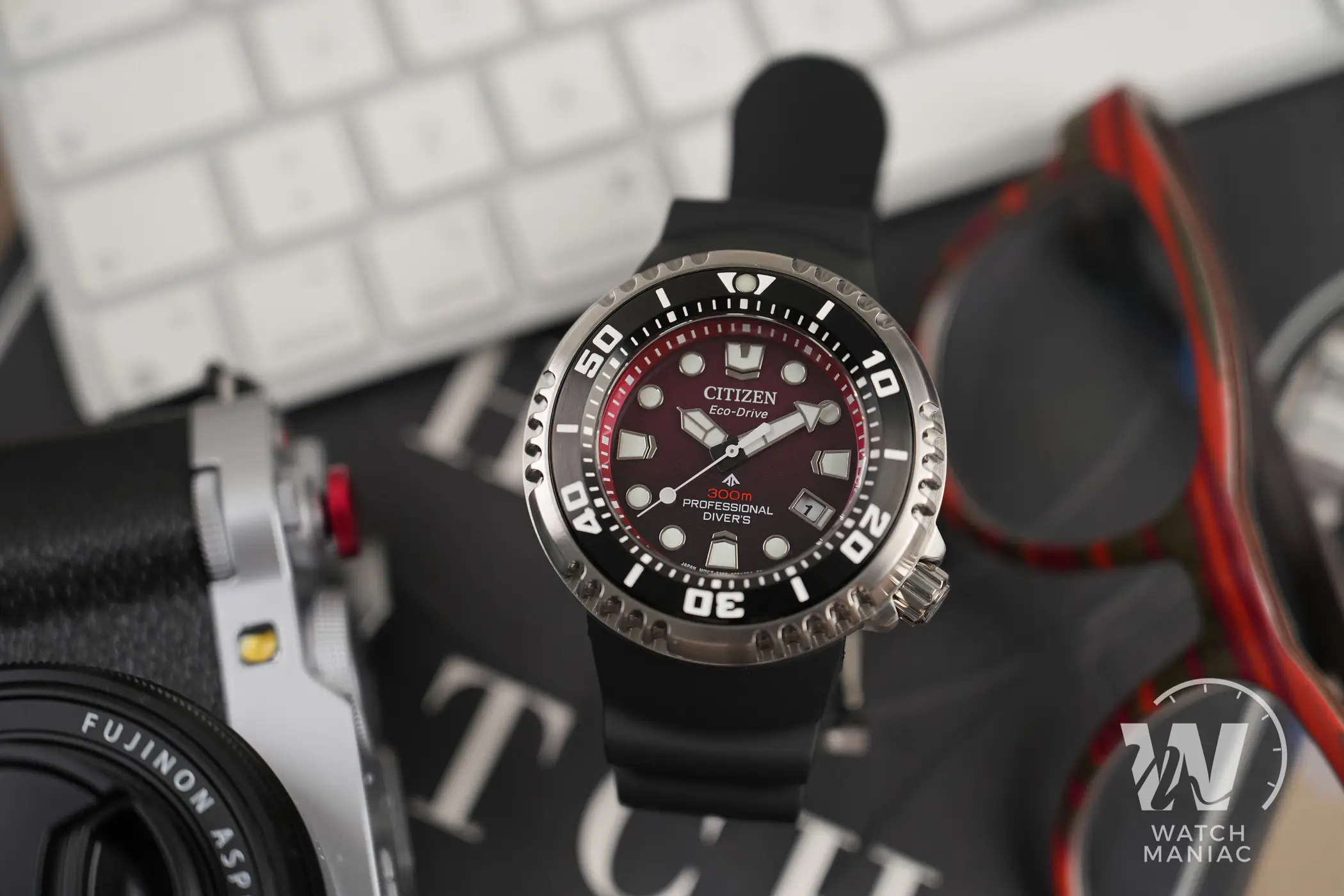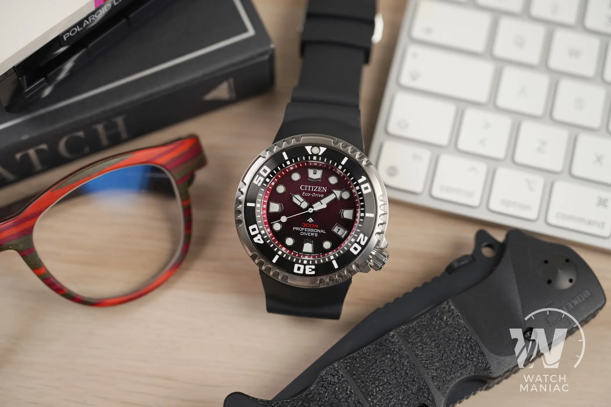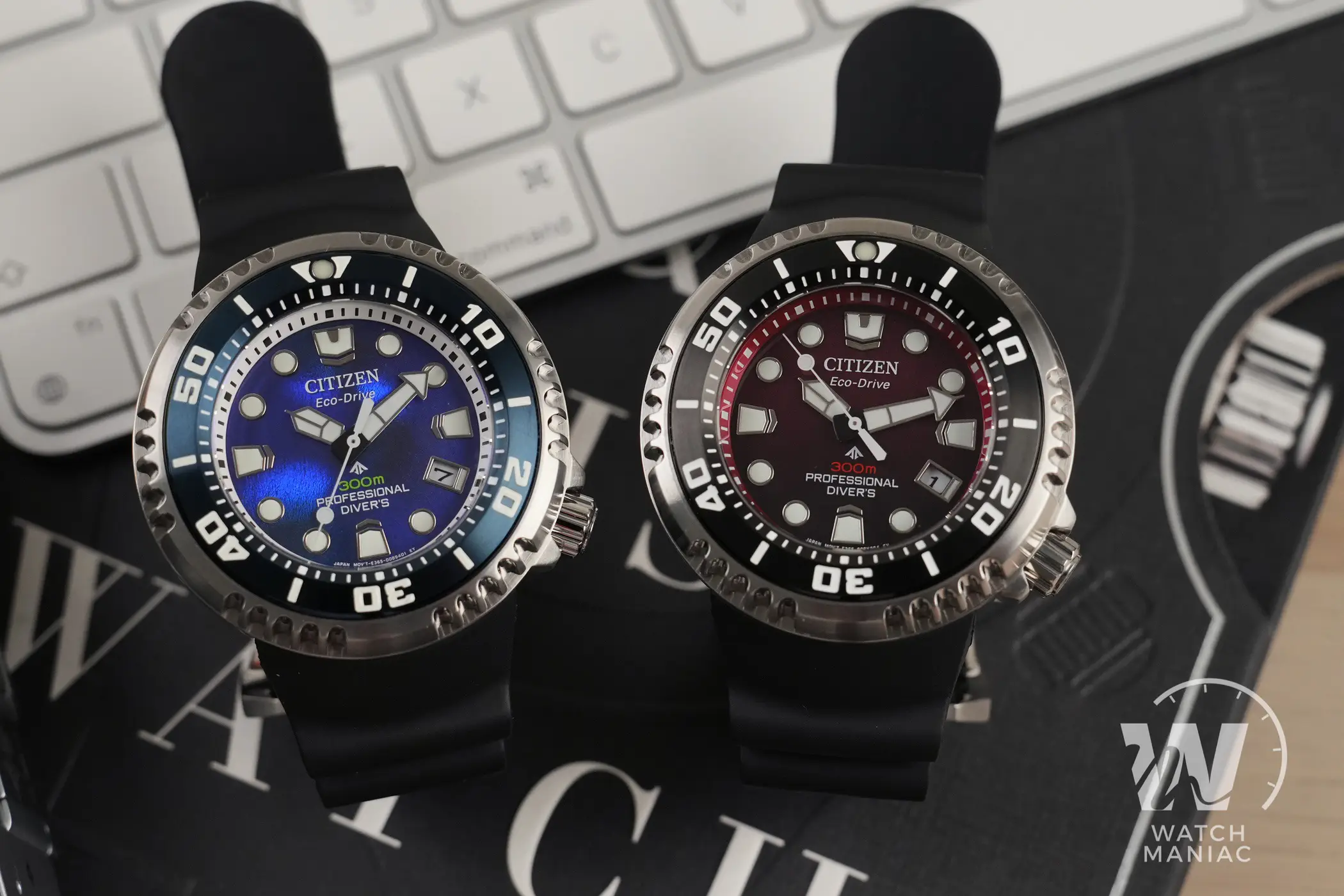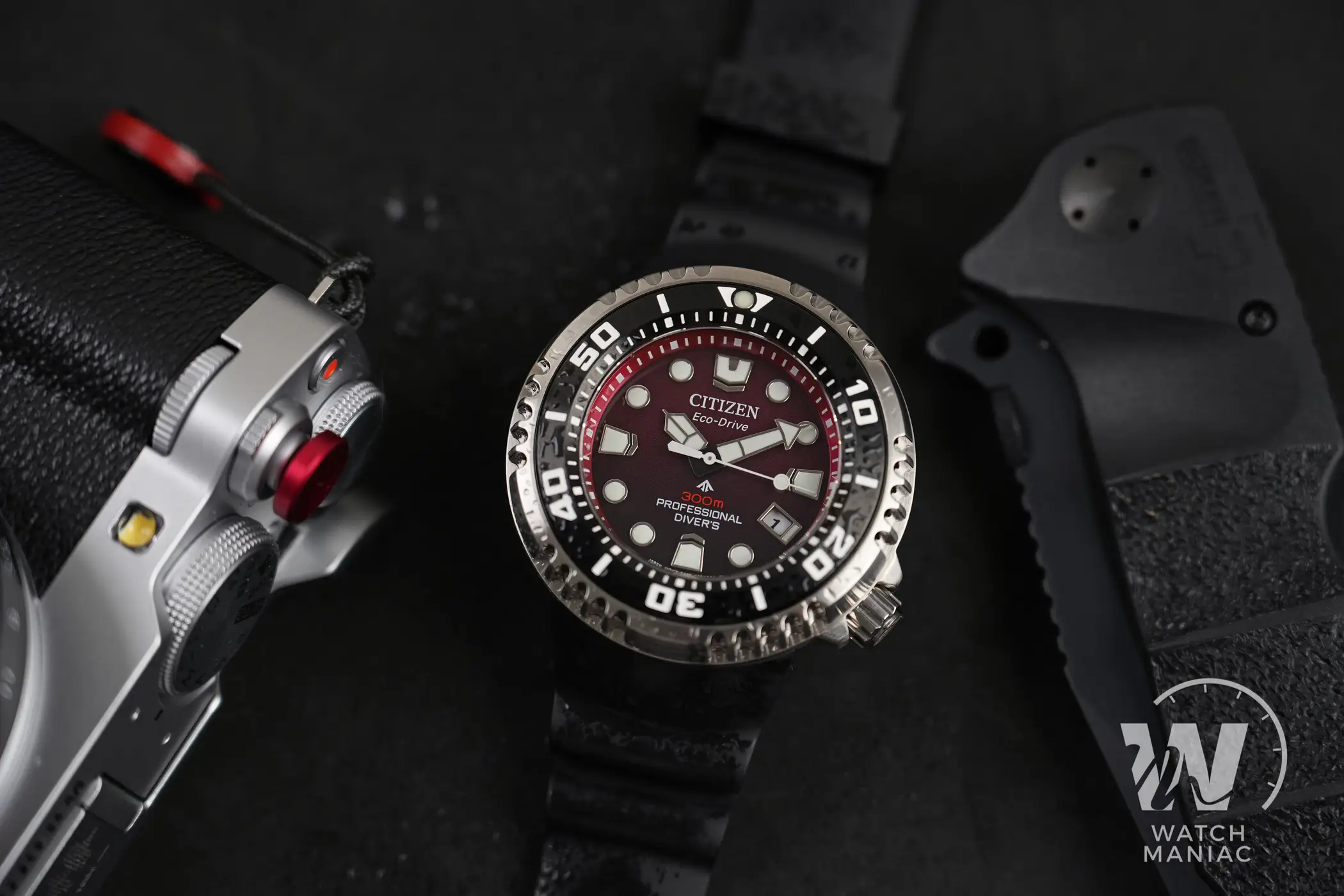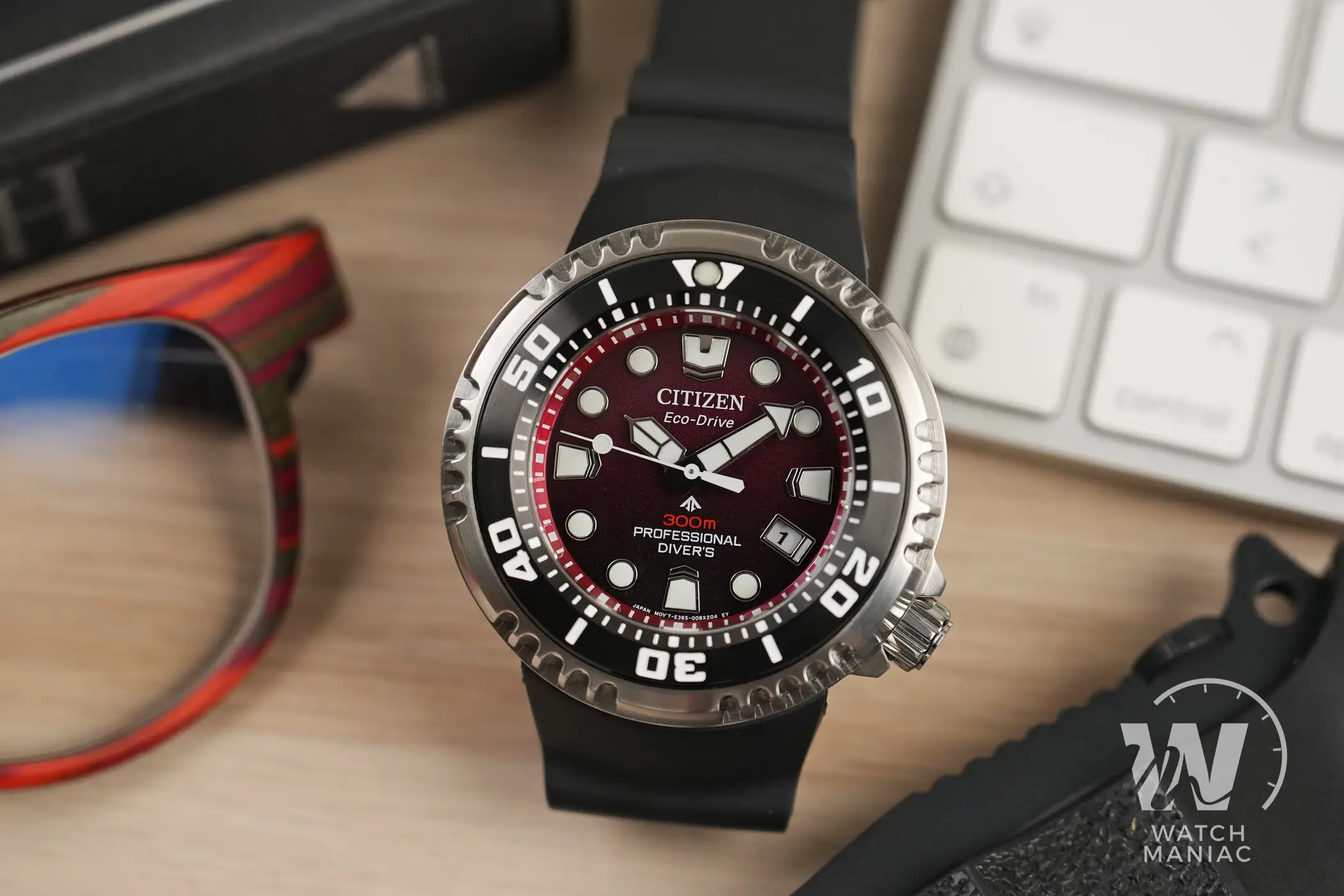 Citizen è senza dubbio un punto di riferimento per la produzione di orologi pensati per chi fa immersioni. Il Promaster Eco Drive Professional Diver’s 300m è una sintesi perfetta dello stile del marchio giapponese, con elementi estetici in comune con vari modelli, come ad esempio l’assenza delle anse sporgenti vista sul cosiddetto “Ecozilla” o le evidenti scanalature antiscivolo della ghiera che ricordano quelle dei Promaster NY0040. Sono poi molte le somiglianze con gli Eco Drive Diver’s 200m, di cui i BN-1024 risultano essere gli eredi diretti, ma con caratteristiche tecniche superiori da tutti i punti di vista.