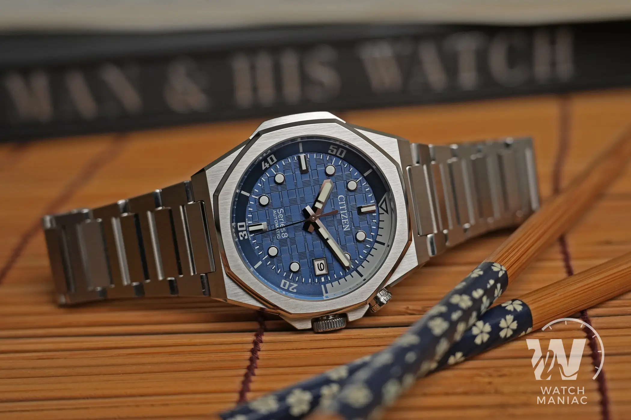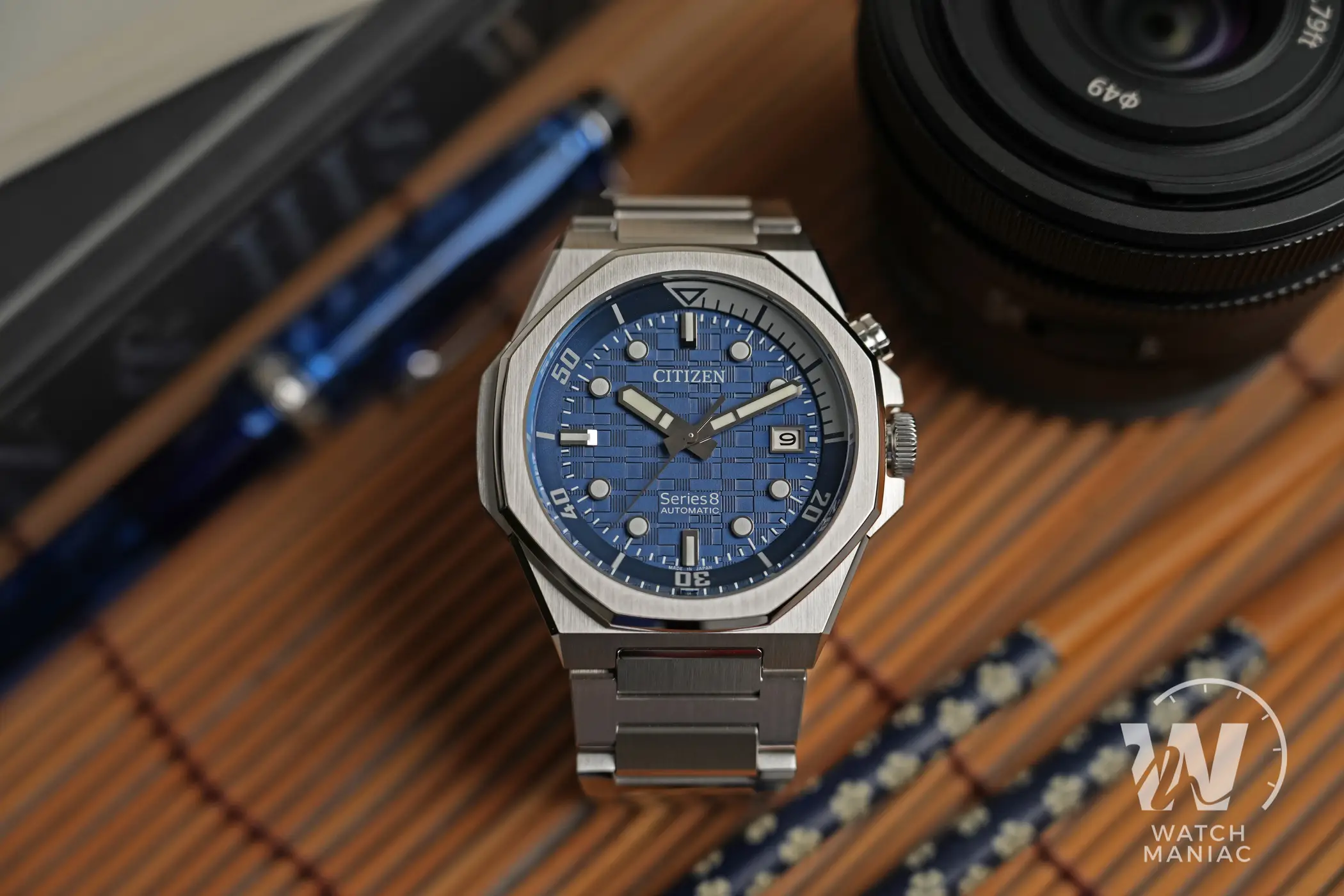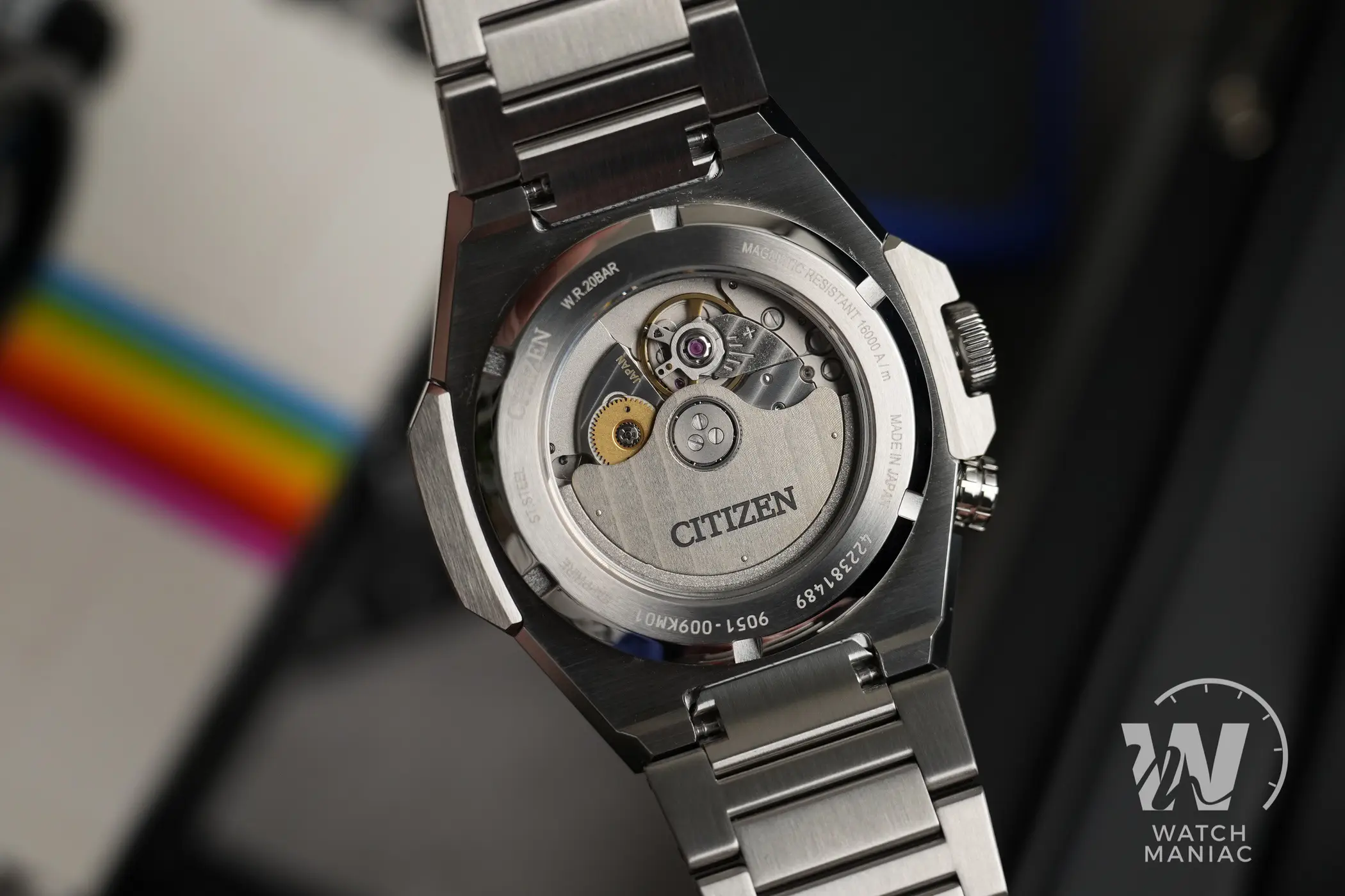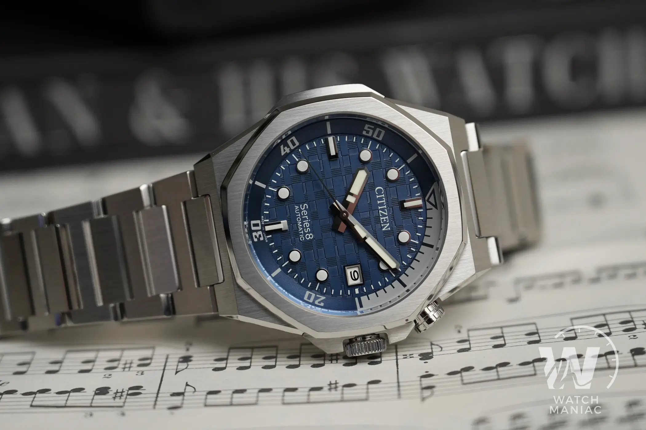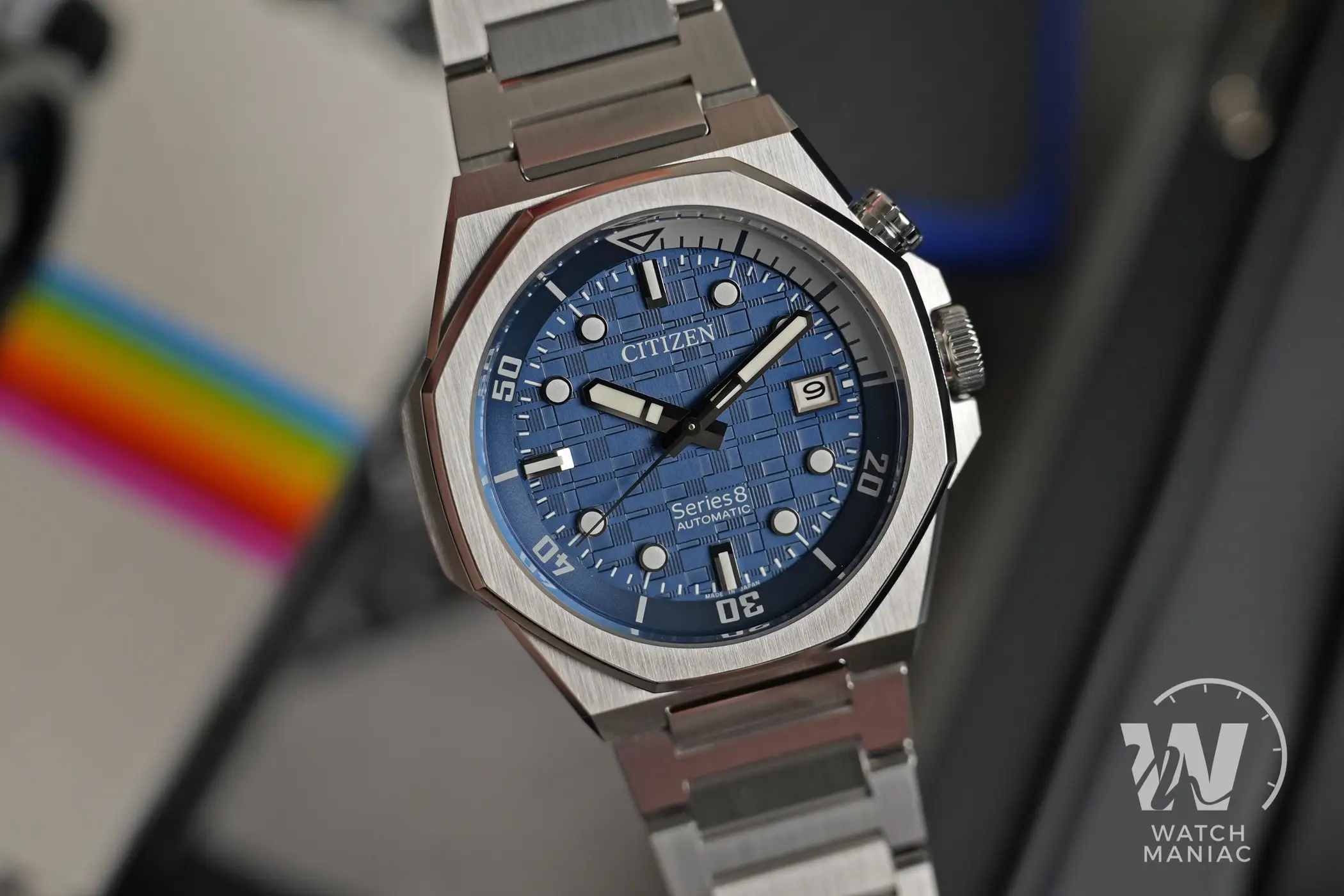 Uno dei dettagli estetici più caratteristici di questo modello è rappresentato dalla lunetta ottagonale. Questa potrebbe far pensare ai vari Royal Oak e Off Shore di Audemars Piguet, ma l’unica somiglianza si limita proprio al numero di lati perché il design di questo Citizen è del tutto differente. E questo discorso vale anche per la cassa che riprende un po’ lo stile tipico degli orologi gentiani degli anni ’70, ma lo fa con un approccio fresco e originale. Le lavorazioni sono impeccabili, con satinature uniformi e biselli lucidi altamente riflettenti che brillano quando vengono colpiti dalla luce e mettono in risalto gli spigoli vivi.