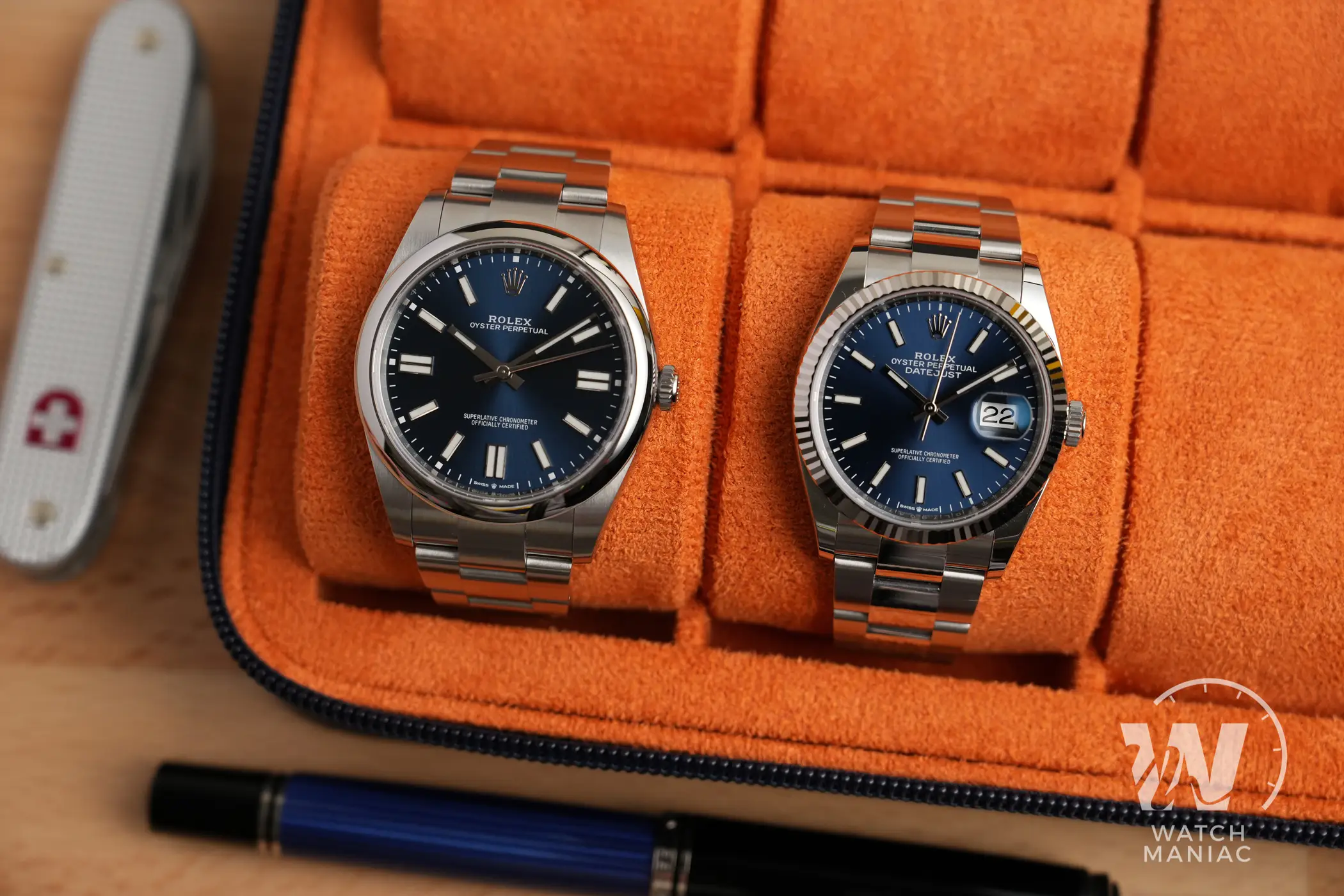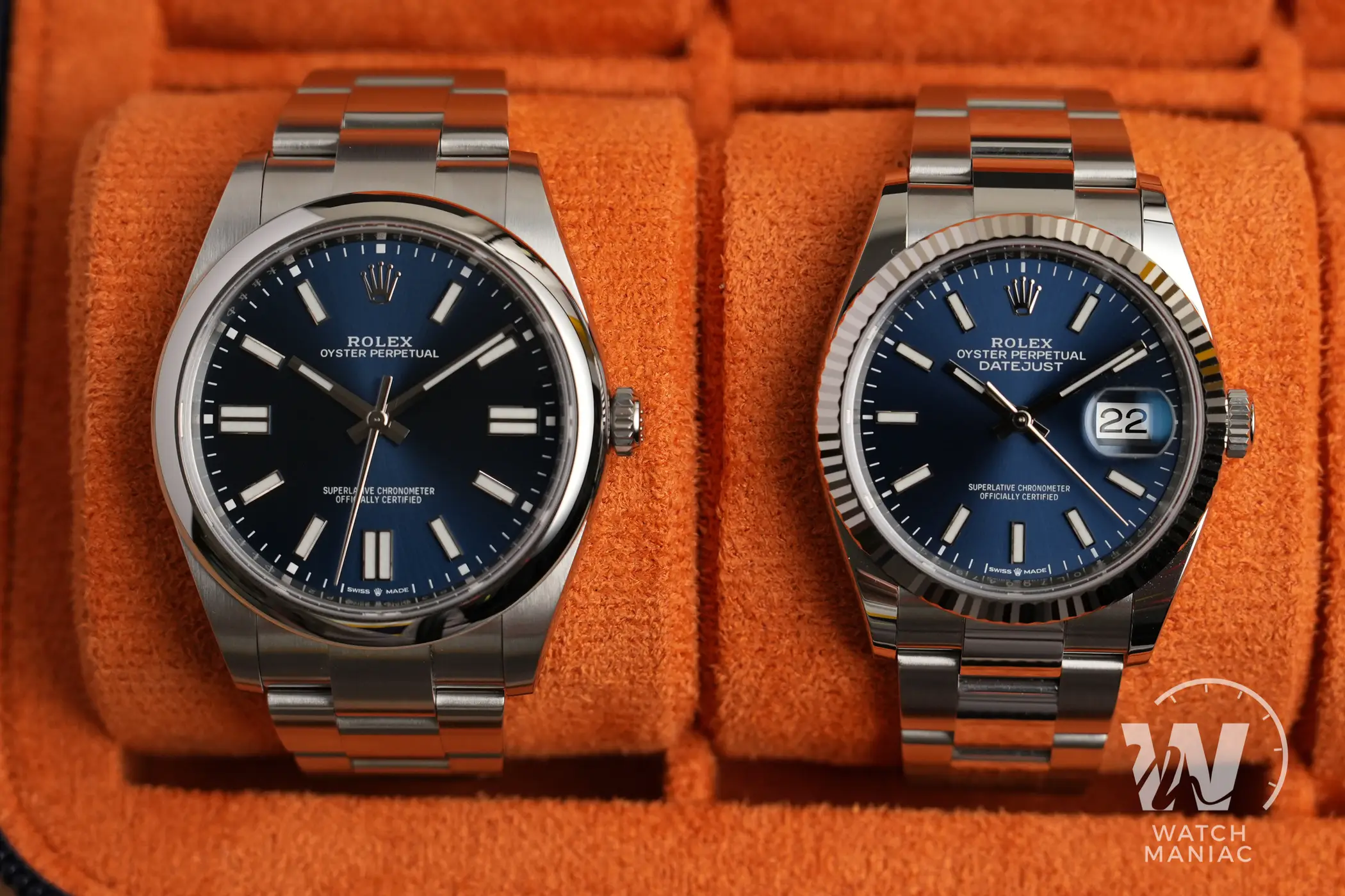 In questo confronto i due modelli sono sostanzialmente nella stessa colorazione, entrambi con dei magnifici quadranti blu soleil che risaltano tantissimo quando vengono colpiti dalla luce.