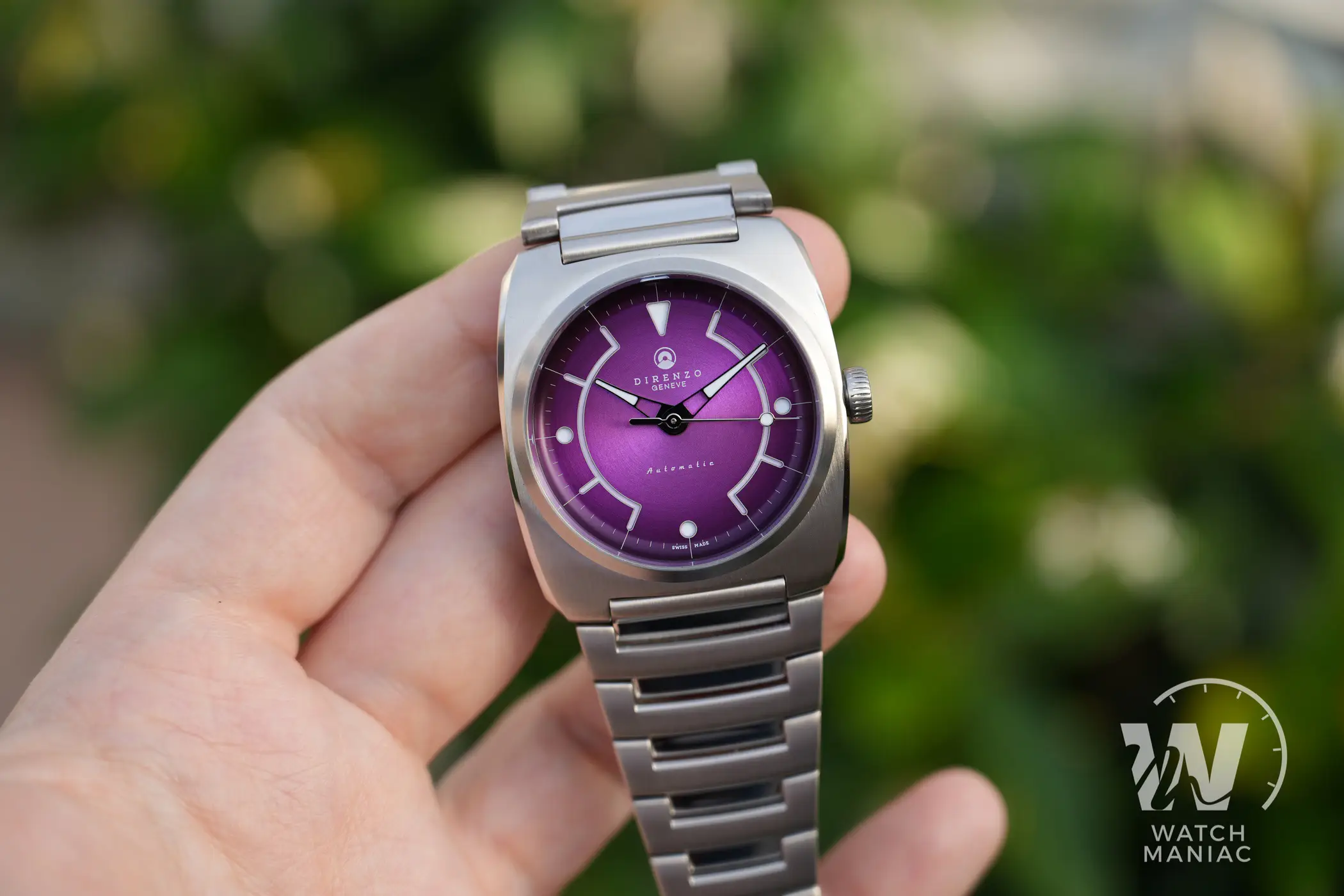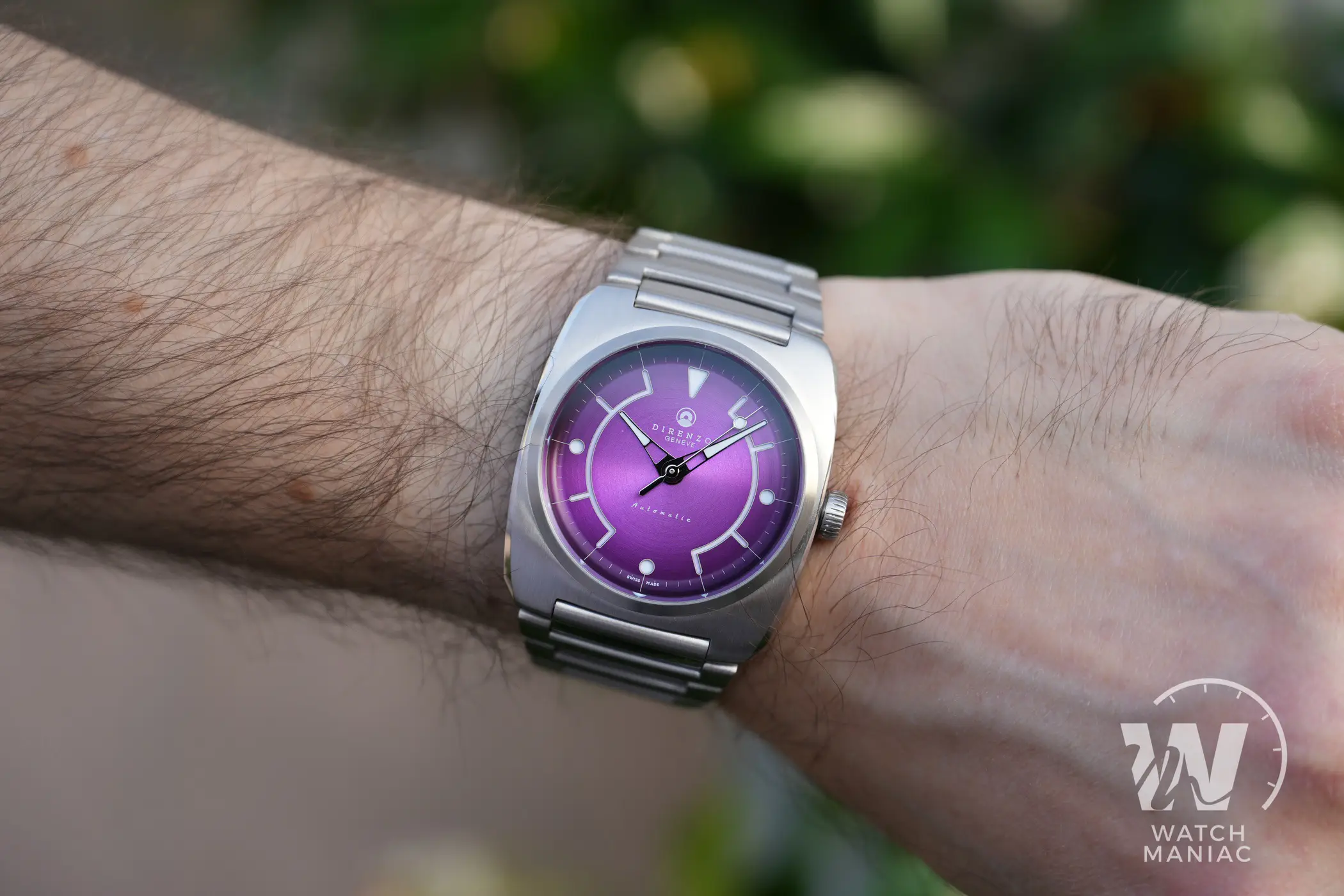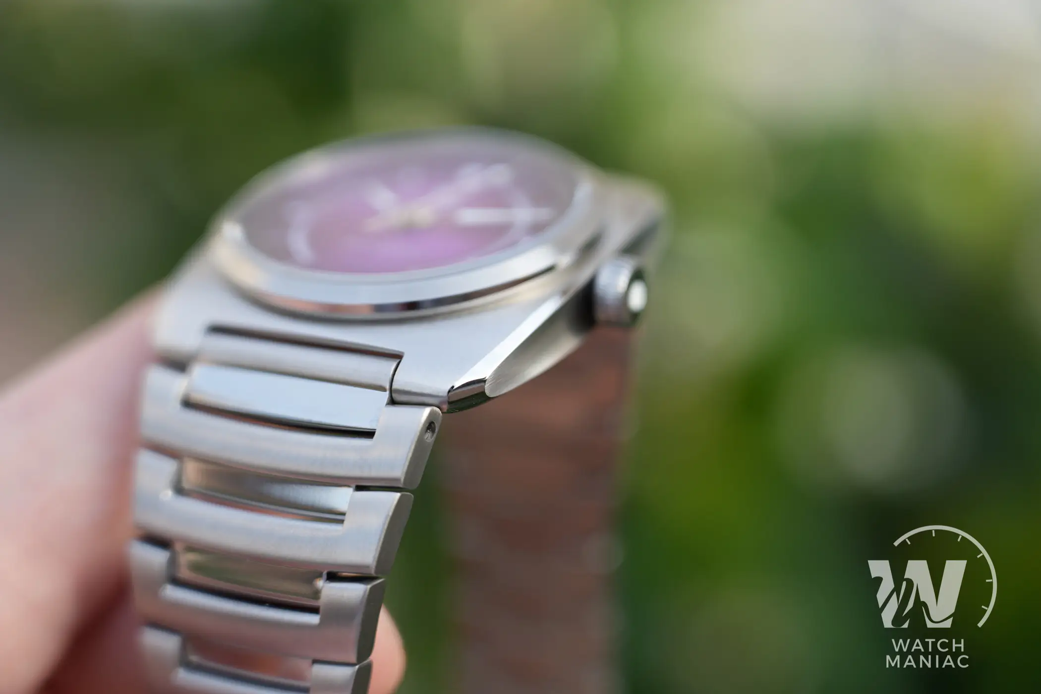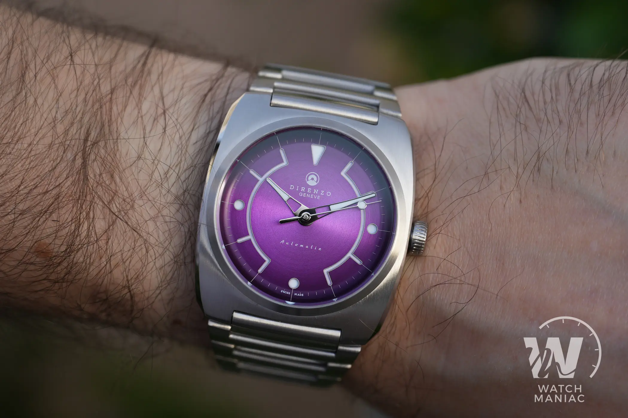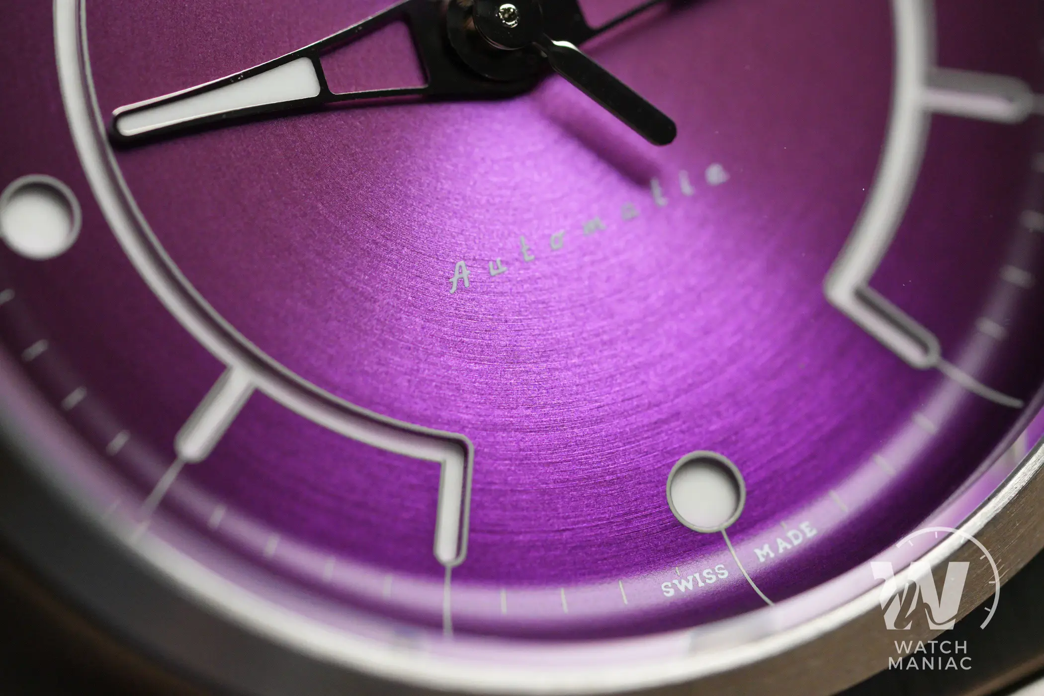 Il quadrante sembra fatto apposta per catturare lo sguardo, sia il nostro che di chi ci circonda: al di là della tonalità scelta, presenta una spazzolatura circolare che risalta tantissimo quando viene colpita dalla luce. Il viola è un colore che a poco a poco si sta vedendo sempre più spesso nell’orologeria. Recentemente, ad esempio, anche Oris ha presentato il nuovo Aquis in edizione limitata.