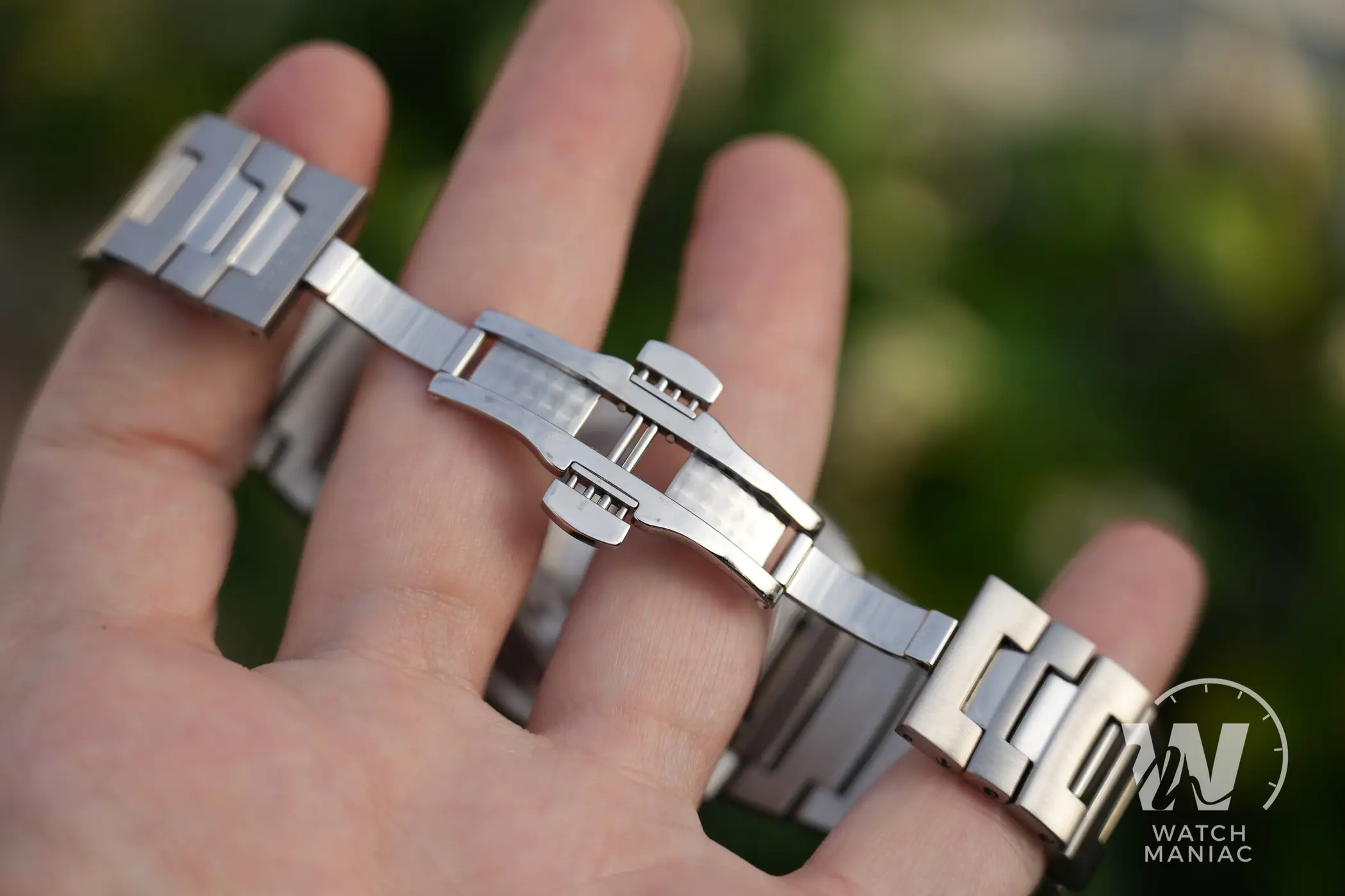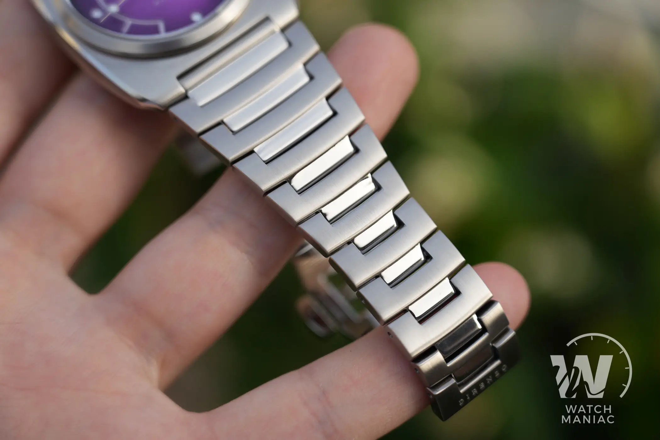 Il primo DRZ 02 veniva venduto soltanto con un cinturino, ma per il nuovo DRZ 02R è stato realizzato un bracciale totalmente inedito. Questo si sposa alla perfezione con il design della cassa, con la prima maglia larga che si raccorda alle anse e man mano si restringe fino ad arrivare alla chiusura. Questa è a doppia deployante, tra l’altro con un accenno di perlage all’interno, e per garantire una perfetta adattabilità al polso non solo sono presenti 2 mezze maglie, ma c’è anche la possibilità di ordinare a parte una scatoletta di tipo tradizionale. Non manca poi lo sgancio rapido, anche se dopo averlo provato con il suo bracciale, sarà davvero difficile vedere bene questo orologio con un cinturino.