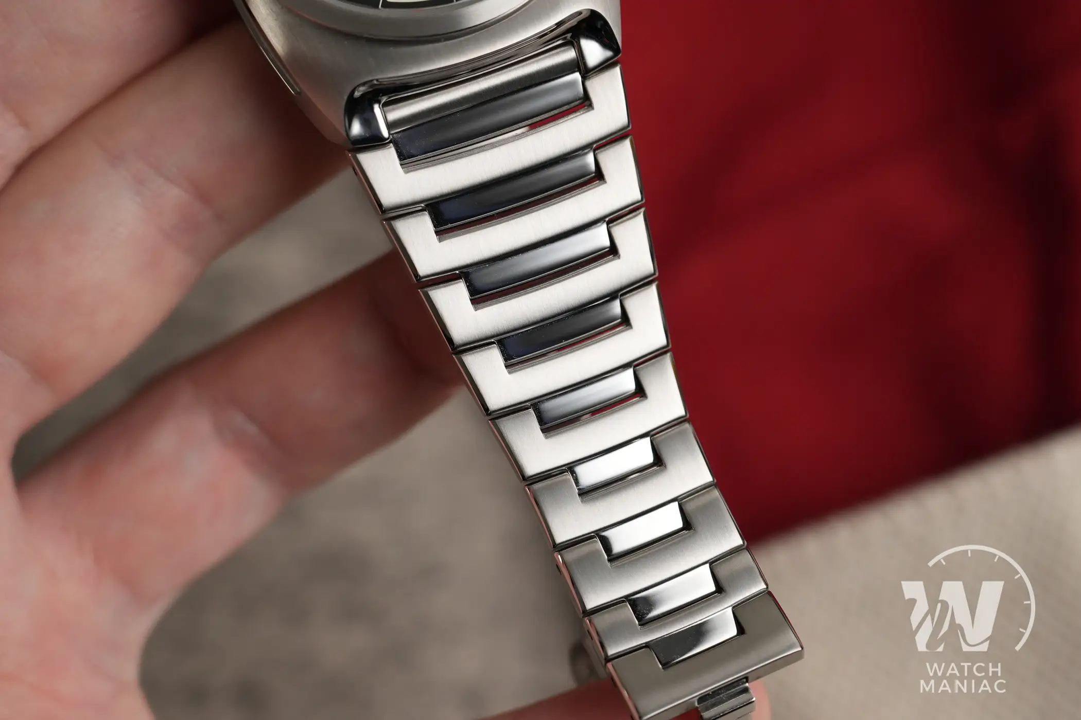 La conformazione della cassa e il bracciale largo in corrispondenza delle anse creano l’illusione di avere a che fare con un orologio un po’ più grande di quel che si potrebbe intuire dalla scheda tecnica. La vestibilità però è davvero ottima, anche grazie al bracciale che segue perfettamente le curve del polso. Il diametro è di 38,0mm, la distanza da ansa ad ansa è di 45,1mm, lo spessore è di 10,7mm e il peso con il bracciale regolato per un polso da 16cm è di 141g.
