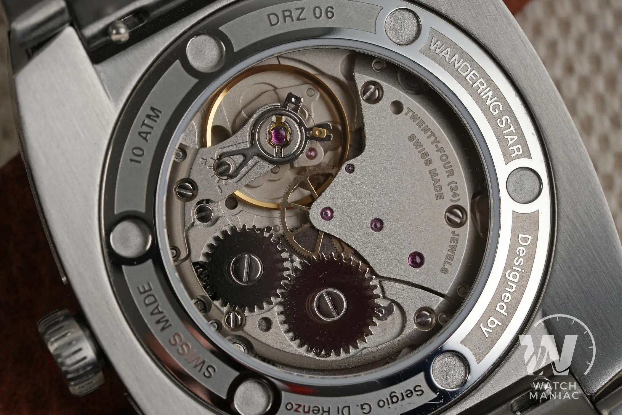 Il DRZ 06 Wandering Star è animato dal Sellita SW-216, un calibro appartenente alla stessa famiglia del ben più diffuso SW-200 ma con carica esclusivamente manuale e piccoli secondi a ore 6. Nel prototipo è stato utilizzato un movimento di livello base, però per la produzione in serie il ponte sarà decorato a côte de Geneve e, come su altri modelli di Direnzo, al centro del vetro sarà presente un piccolo adesivo con il logo del marchio in rosso. La frequenza è di 28.800a/h, la riserva di carica è di 42 ore ed è presente il fermo macchina.