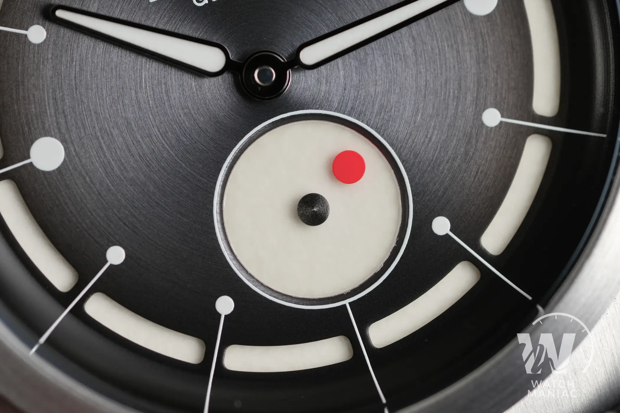 Grazie alla verniciatura sfumata e alla lavorazione del quadrante, la tonalità non è compatta e persino un colore solitamente comune come il nero risulta essere particolare e ricercato. A differenza di quanto fatto di solito dal marchio, in questo caso non sono previste versioni con la data e questa è una scelta legata in parte anche al movimento selezionato per questo modello, come vedremo più avanti, oltre che alla volontà di mantenere ancora più pulito il quadrante dando risalto alla sua caratteristica saliente.Se le ore misteriose sono una complicazione rara ma in fondo non rarissima, è è certamente peculiare vedere utilizzare questo sistema per una “secondina misteriosa“. In pratica c’è un disco che prende il posto di una più comune lancetta ed è proprio questa soluzione estetica e tecnica a ispirare il nome del modello, Wandering Star, stella errante, che fa riferimento al punto rosso che sembra quasi vagare senza sosta con lo scorrere del tempo.