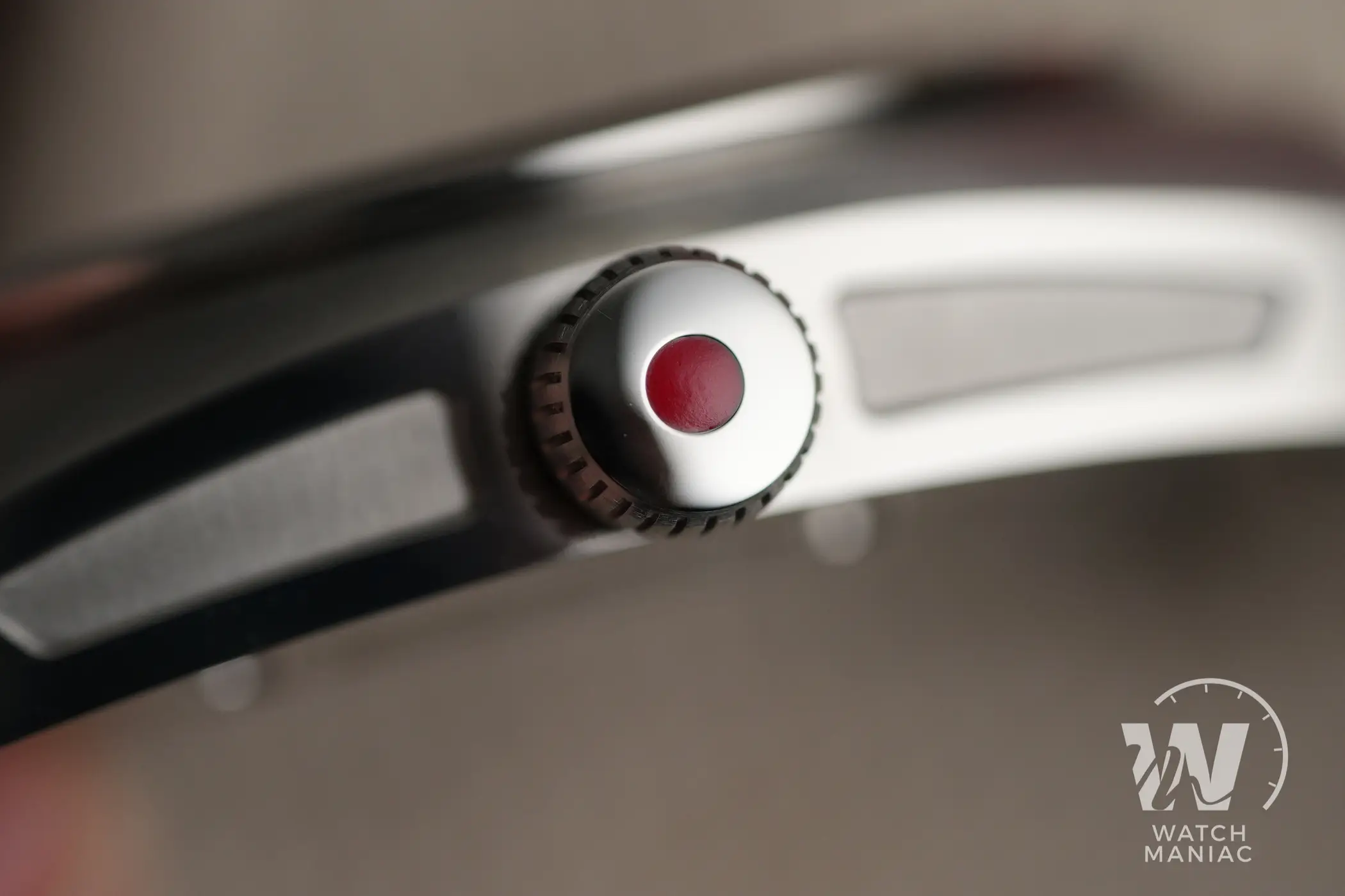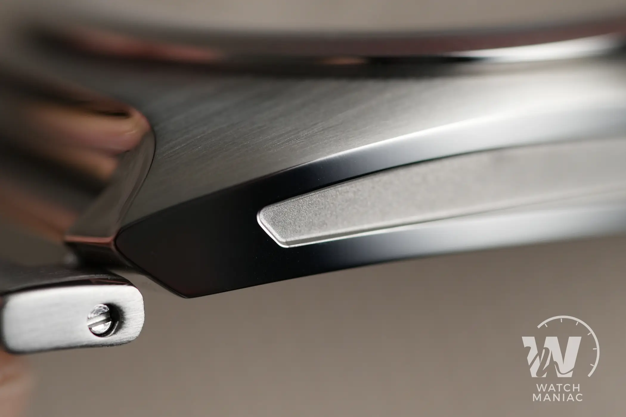 Le linee della cassa sono estremamente originali e, in quanto tali, potrebbero non incontrare i gusti di tutti, ma in fondo non è così importante per un marchio abituato a produrre lotti molto limitati. Questo design riesce ad essere entusiasmante proprio perché si differenzia da tutto ciò che c’è sul mercato. Lo stile è quello retrofuturistico dello 02R Aerolite, ma qui è ancora più fluido e “organico”. Intorno al vetro c’è una lunetta satinata con una sottile cornice lucida alla base. La parte superiore è tutta satinata, mentre i fianchi, scavati nella parte centrale, sono lucidi. Questa finitura è stata scelta per far risaltare ancora di più le sezioni micropallinate, però personalmente avrei mantenuto le stesse satinature del resto della cassa.