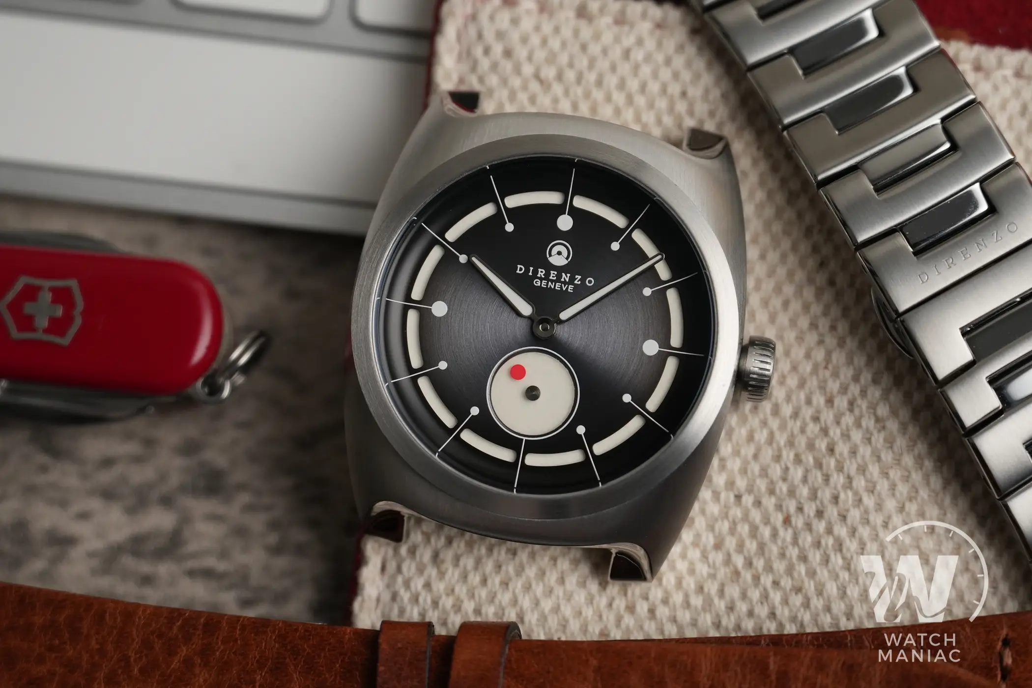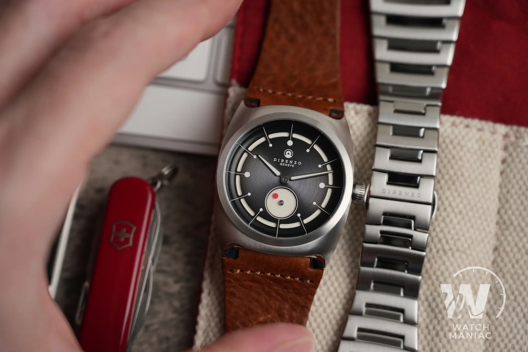 Il corredo è lo stesso che Direnzo sta utilizzando da un paio di anni a questa parte, con scatola in cartone e astuccio da viaggio in cordura che custodisce al suo interno l’orologio.
