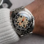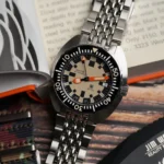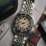 Partiamo subito dal presupposto che, così come i Doxa Army assegnati in passato ai reparti speciali dell’esercito svizzero, anche in questo caso si tratta di una variante modificata del SUB300T. Da esso riprende infatti la cassa e il bracciale e una parte delle caratteristiche tecniche. Eppure, fin dal primo colpo d’occhio, si nota un aspetto decisamente differente dato dalla ghiera e dal quadrante, che si discostano parecchio dalla tradizione di Doxa.