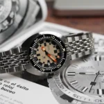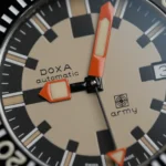 Il Doxa Army ha un fascino tutto suo, anche legato alla sua storia in parte avvolta dal mistero. Rappresenta una sorta di reinterpretazione dello stile tipico del 300T per soddisfare specifiche esigenze tecniche relative all’utilizzo in ambito militare. Queste differenze, però, possono tornare comode anche nell’utilizzo quotidiano: maggior visibilità al buio, spessore complessivo leggermente inferiore e una ghiera di più immediata lettura, con inserto in ceramica resistente ai graffi. Il rovescio della medaglia è che rispetto al SUB300T si perdono i tempi di decompressione sulla ghiera e l’impermeabilità è inferiore.