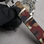 In aggiunta al cinturino o bracciale di vostra scelta è presente anche un NATO mimetico in nylon con fibbia personalizzata con cui il Doxa Army diventa particolarmente aggressivo.