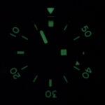 Al buio le prestazioni del Doxa Army sono davvero molto buone. Trovo che questo sia sensibilmente più performante del SUB300T, con una luminescenza brillante e duratura non soltanto su sfere e indici ma persino sui riferimenti della ghiera. Davvero un ottimo risultato.