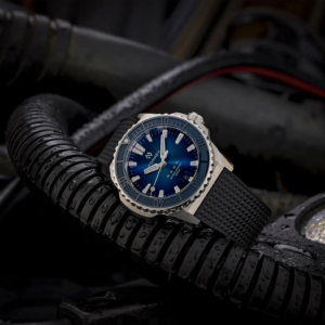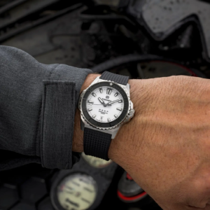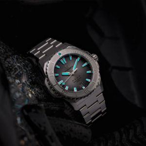 In tutto le configurazioni tra cui scegliere sono ben 112 e, grazie ad alcuni accorgimenti tecnici, non soltanto è possibile cambiare cinturini o bracciali senza l’utilizzo di attrezzi specifici, ma addirittura le ghiere. Questi accessori possono anche essere ordinati separatamente, in un secondo momento, dando quindi ampia libertà agli appassionati di modificare l’aspetto del proprio Reef in base ai propri gusti. Il quadrante è disponibile in 4 diverse colorazioni: blu, verde e grigio con lavorazione soleil, mentre quello bianco presenta una finitura opaca abbinata a sfere e indici bruniti.