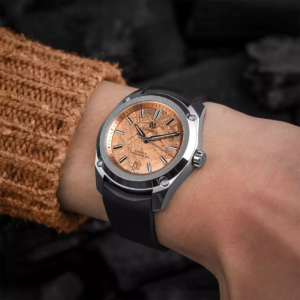 Nell’industria orologiera ci sono tanti esempi di modelli che utilizzano quadranti realizzati in meteorite. E non è neppure una novità vedere dei rivestimenti superficiali in PVD che fanno variare la colorazione naturale di questo materiale in altre tonalità più accese (blu, verde, rosso, ecc.). Il Formex Essence 39 Space Gold utilizza sempre un sottile strato di meteorite Muonionalusta, ma questo è stato placcato in oro rosa 18 carati tramite elettrodeposizione. In questo modo si aggiunge un tocco di esclusività in più, pur lasciando perfettamente visibile la trama tipica del meteorite, che tra l’altro varia da una zona di taglio all’altra rendendo, di fatto, ogni esemplare di orologio diverso dagli altri.