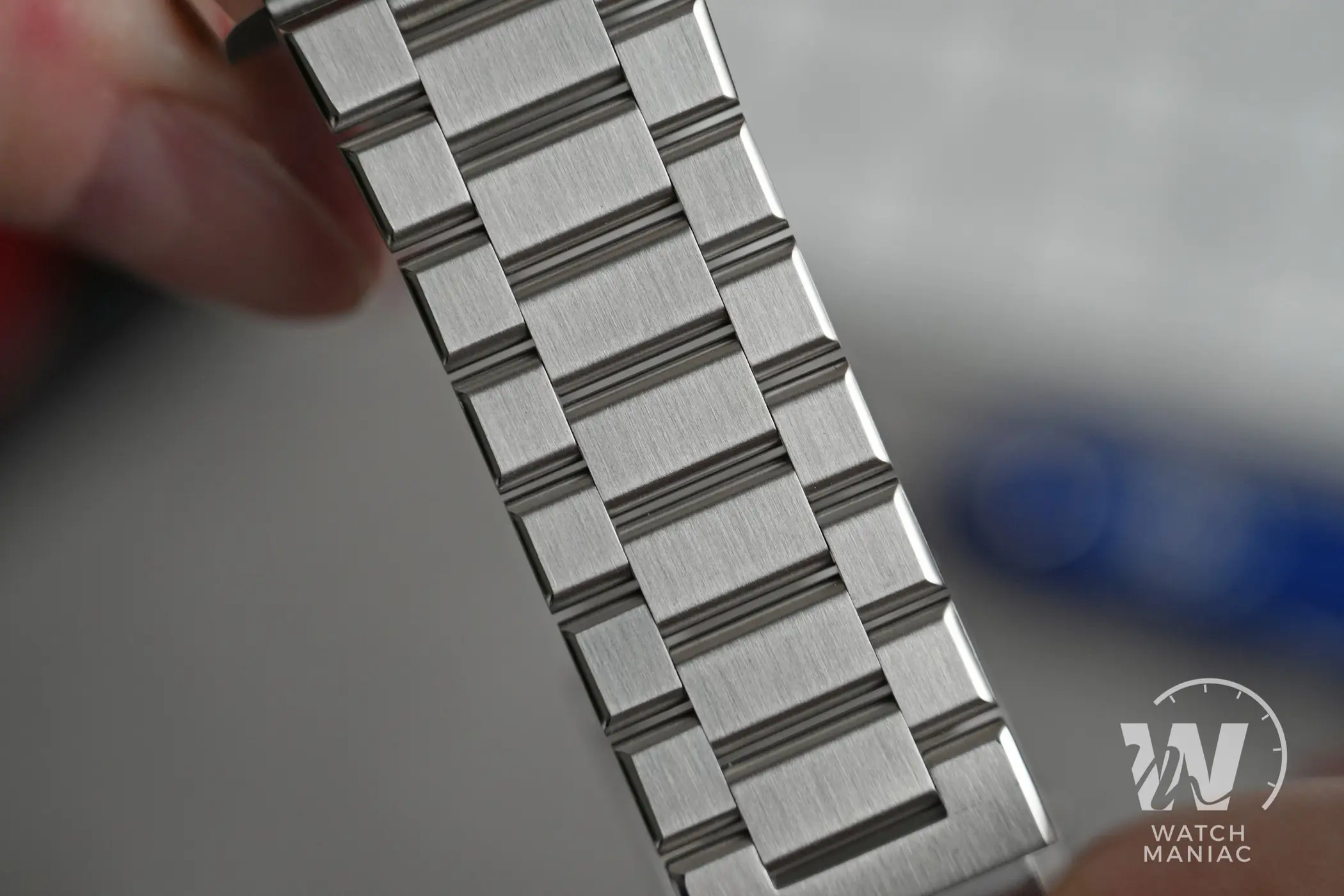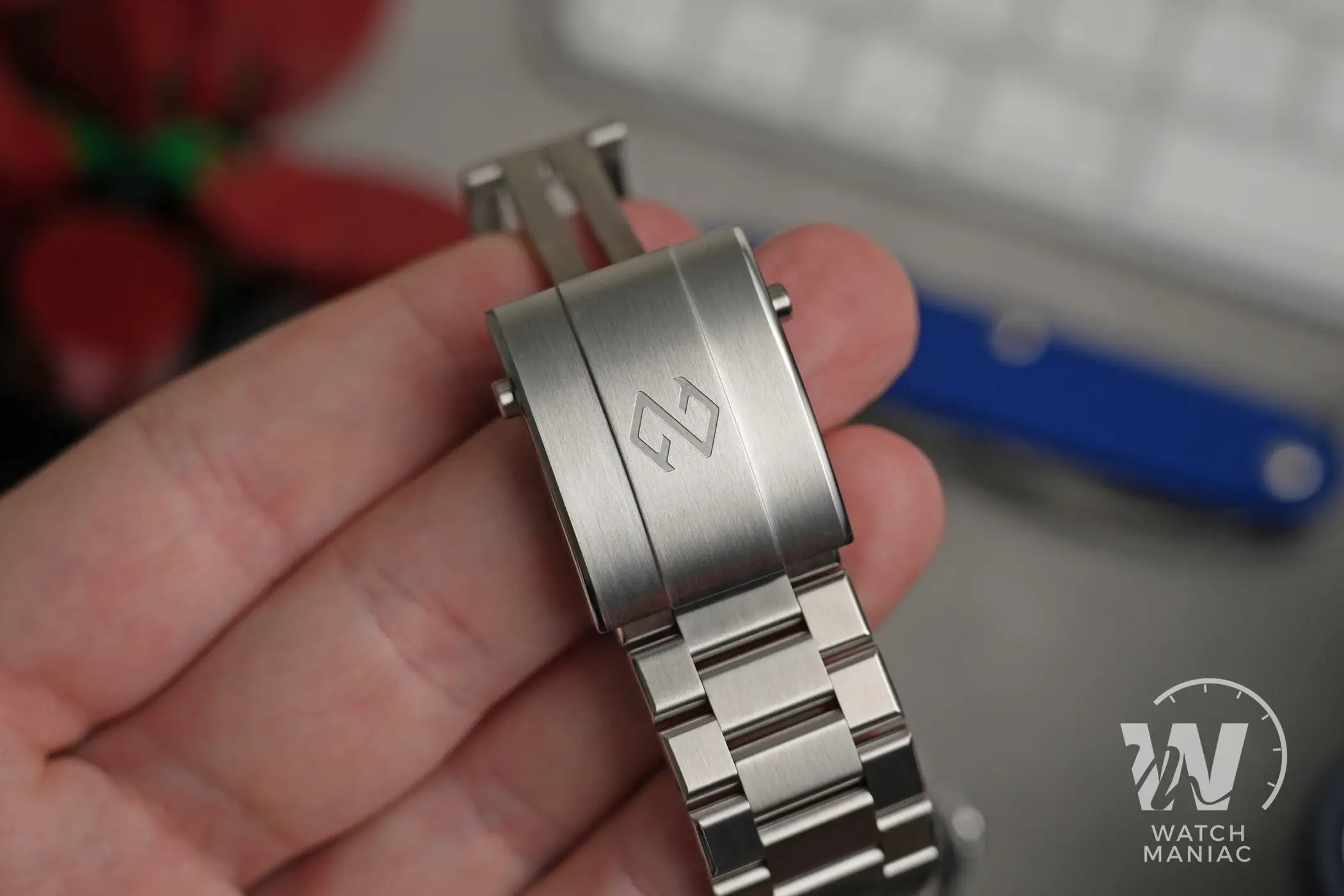 Nella maggior parte delle immagini di questa recensione avete visto montato il bracciale in acciaio. Questo è esattamente lo stesso utilizzato sui REEF da 42mm, addirittura nella stessa identica misura da 22mm di larghezza in corrispondenza delle anse. Si tratta di un bracciale di altissima qualità, con maglie corte, tenute ferme da perni a vite e molto mobili le une sulle altre. La finitura è principalmente satinata, con la sola eccezione dei biselli lucidi ai lati.