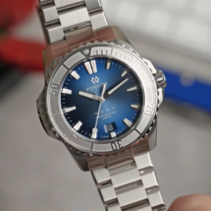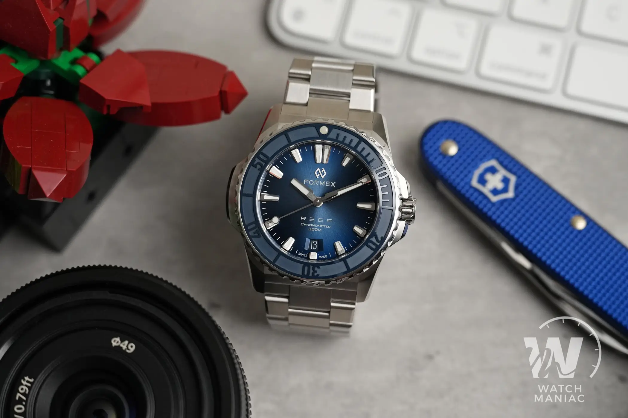 Il REEF è il diver presentato da Formex nel 2020 e che a partire dal 2022 si è arricchito anche della variante con complicazione GMT. Pur essendo un modello ben proporzionato e con un’ottima vestibilità, il suo diametro da 42mm poteva risultare eccessivo per alcuni appassionati. Da qualche mese le cose sono cambiate con l’arrivo della versione da 39,5mm, che aggiunge un’opzione in più per chi fino ad ora aveva apprezzato il design e le caratteristiche di questo diver ma non era troppo convinto delle sue misure.