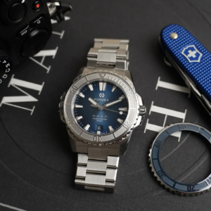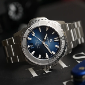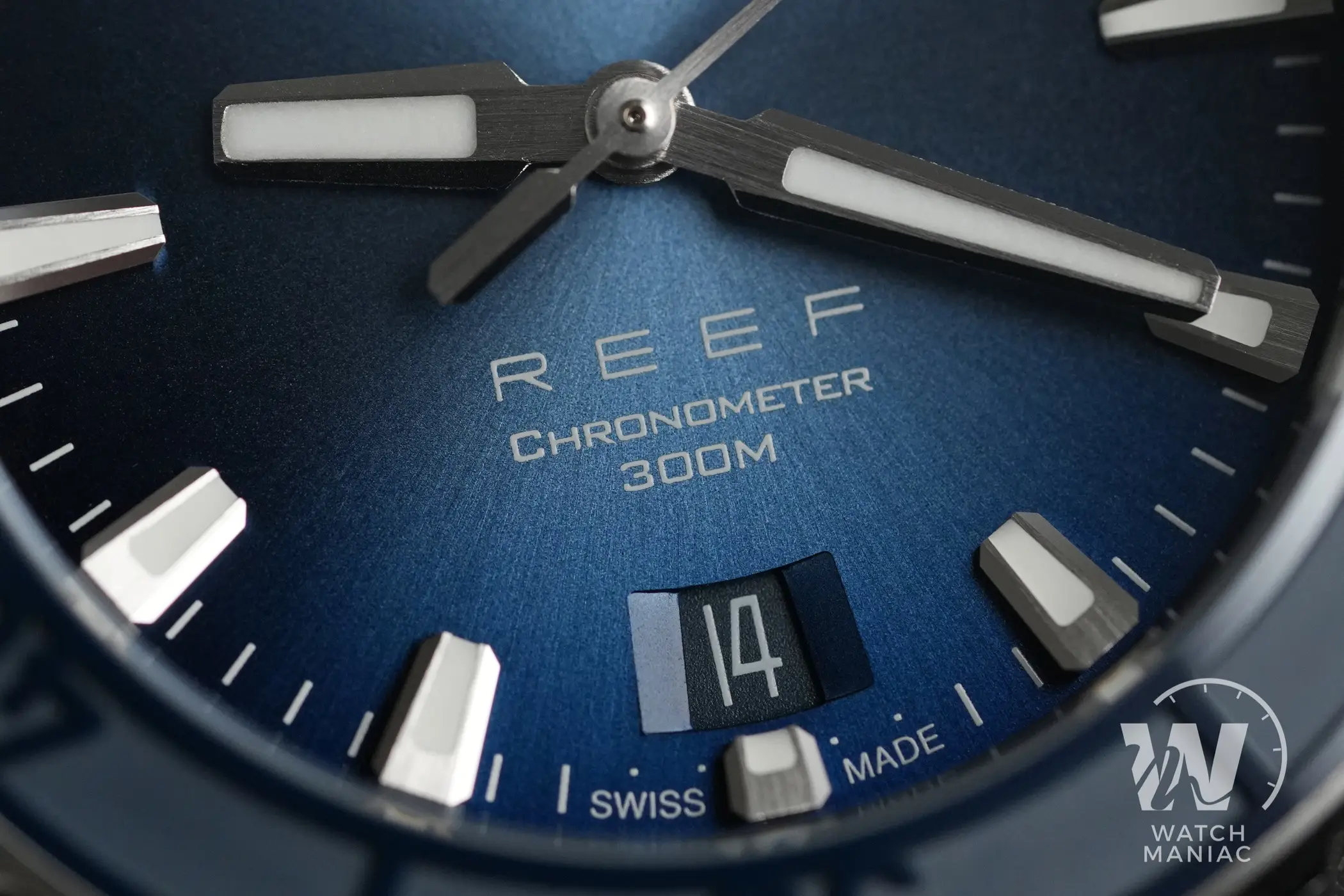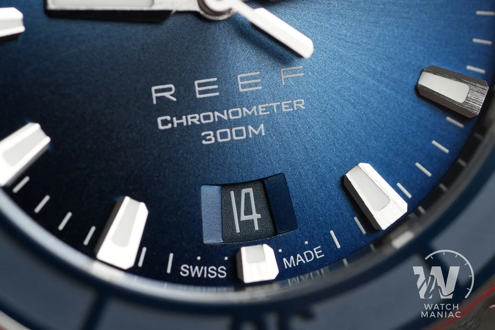 Al momento il REEF nella misura da 39,5mm è disponibile in 4 diverse colorazioni di quadrante e ghiera che possono essere abbinate tra loro a proprio piacimento. In più è stata introdotta una special edition denominata Bahama Blue che verrà prodotta solo per quest’anno. La finitura soleil del quadrante e la sua colorazione leggermente sfumata risaltano parecchio al variare della luce, facendo passare la tonalità dal blu scuro all’azzurro intenso.