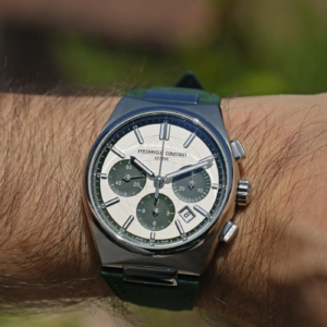 Il Frederique Constant Highlife si conferma essere un progetto validissimo grazie al suo design originale e alla buona ergonomia e l’aggiunta della funzione cronografica non ha alterato in alcun modo le sue ottime qualità. La scelta del calibro è decisamente azzeccata sia per la fascia di prezzo sia per la parentela aziendale con La Joux Perret. Poi è una gran bella notizia che in Frederique Constant siano riusciti ad innalzare l’impermeabilità fino a 10atm di pressione. Il prezzo di listino di quest’edizione limitata (di 1.888 pezzi) per il 25° anniversario della famiglia Highlife è di 3.495€, che è molto buono se si considera anche il corredo con bracciale in acciaio e due cinturini.
