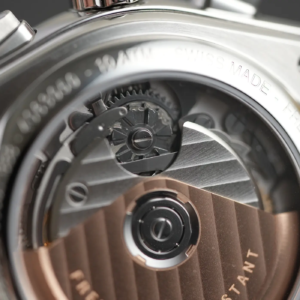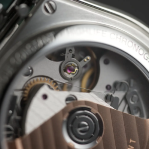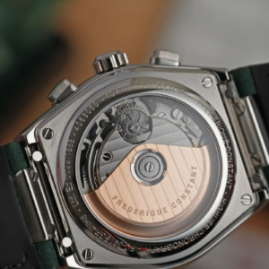 Il movimento all’interno è l’FC-391 basato sul L110 di La Joux Perret, una meccanica che condivide gran parte della sua architettura con la famiglia Valjoux, ma può vantare uno smistamento delle funzioni cronografiche tramite ruota a colonne. Questa è una modifica rilevante rispetto al progetto iniziale, che dà certamente prestigio al calibro e che rende gli innesti molto più fluidi. Tra l’altro, per chi apprezza questo genere di dettagli, il movimento può quasi essere considerato in house visto che Frederique Constant e La Joux Perret sono entrambe di proprietà del gruppo Citizen. La frequenza è a 28.800a/h, la riserva di carica è di 60 ore, è possibile la ricarica manuale ed è presente il fermo macchina.
