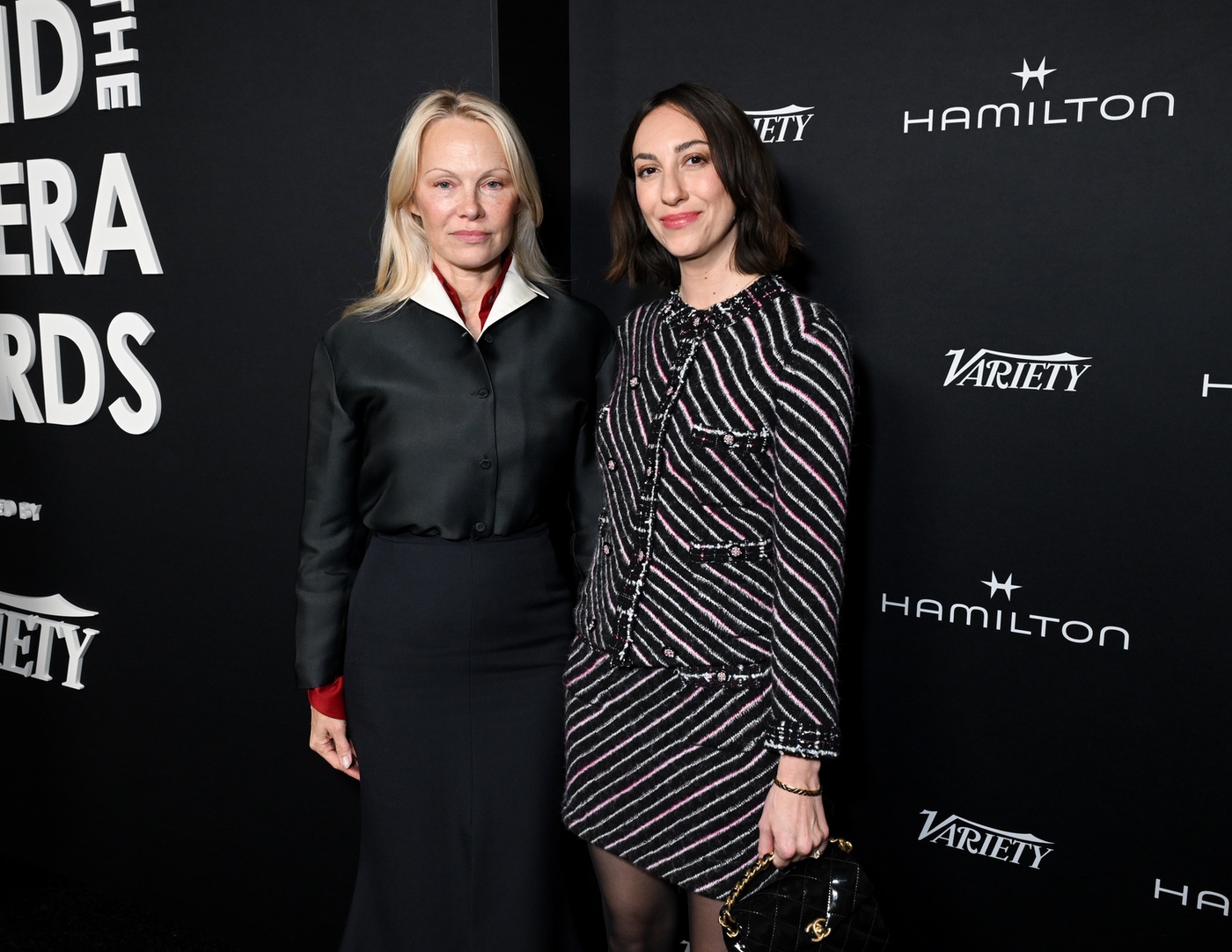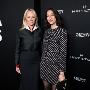 Pamela Anderson, Gia Coppola at the Hamilton Behind the Camera Awards presented by Variety held at the Hollywood Athletic Club on November 14, 2024 in Los Angeles, California.