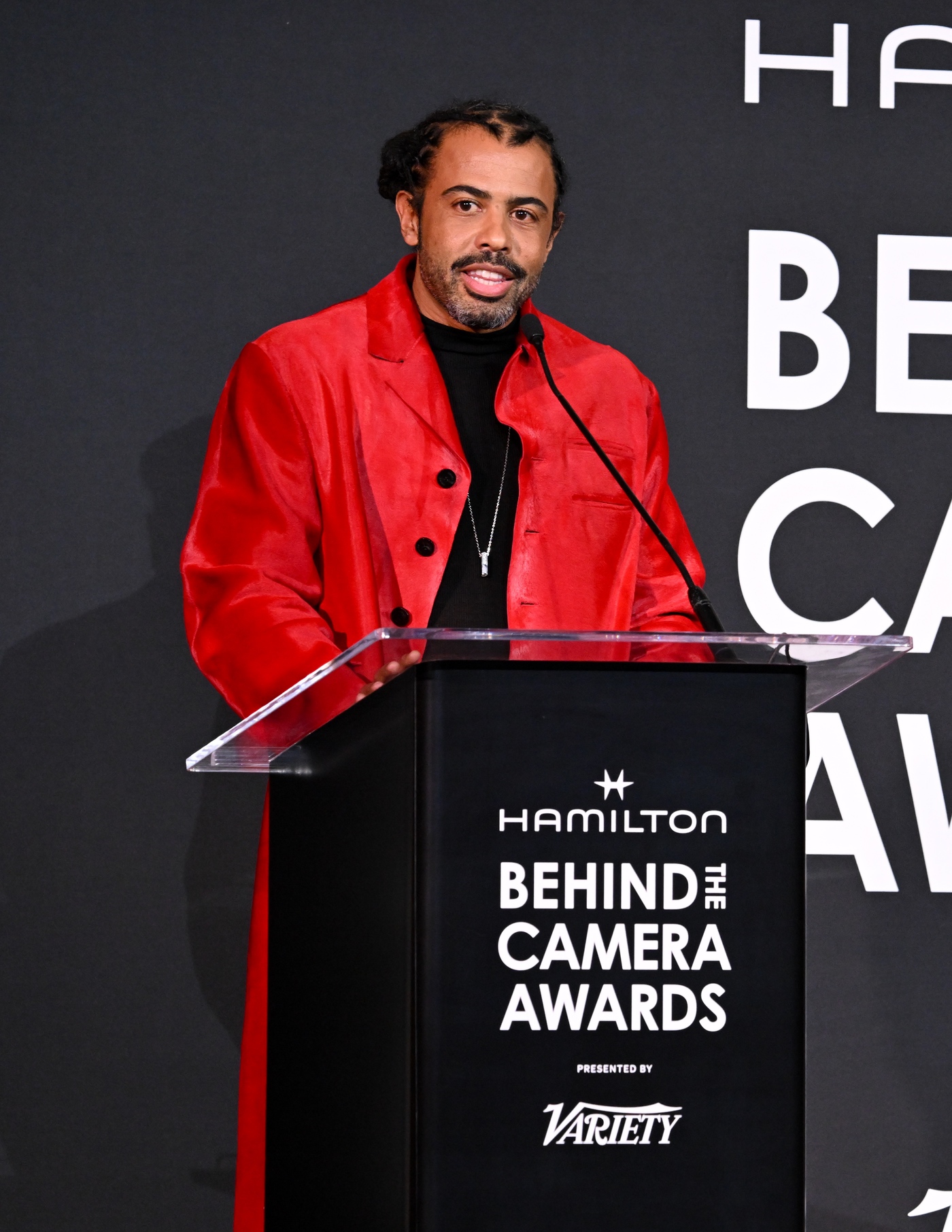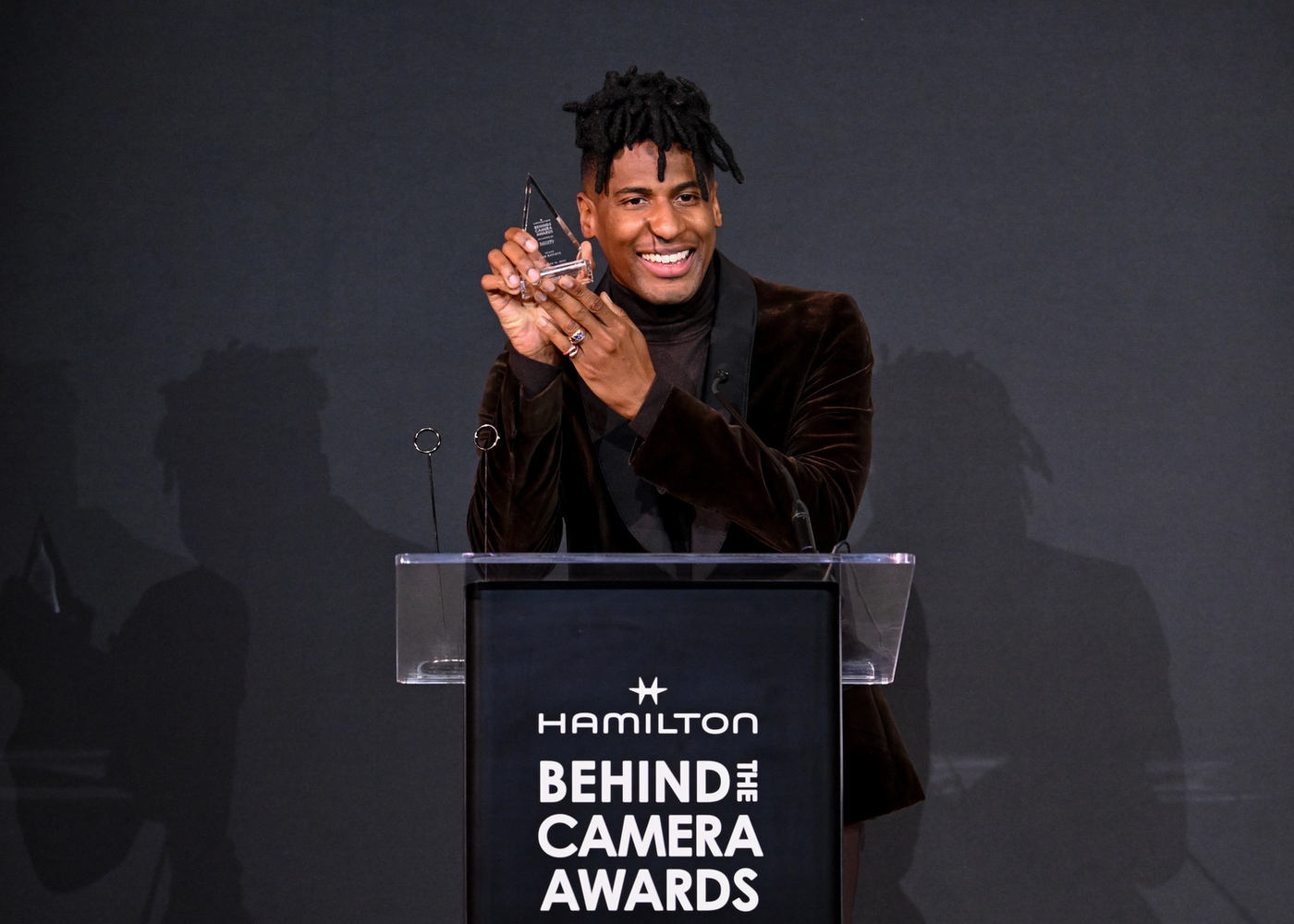 Jon Batiste receives the Hamilton Behind the Camera Award for score for “Saturday Night” at the Hamilton Behind the Camera Awards presented by Variety held at the Hollywood Athletic Club on November 14, 2024 in Los Angeles, California.