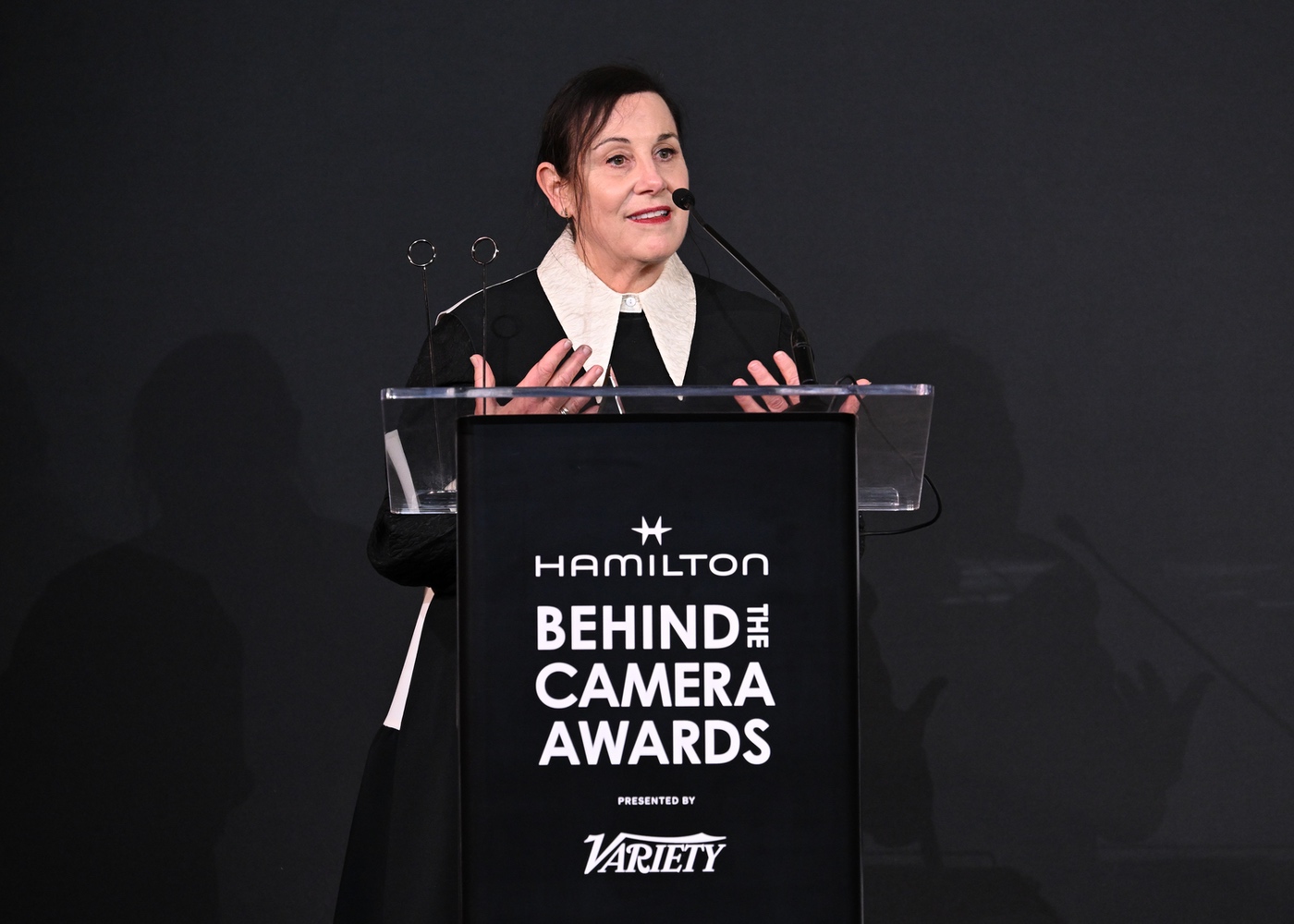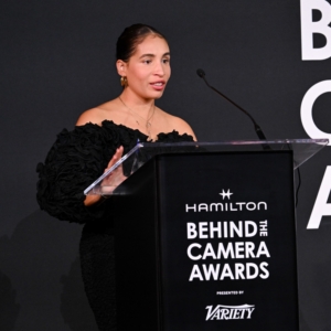 Nora Mendis receives the Hamilton Behind the Camera Award for production design for “Nickel Boys” at the Hamilton Behind the Camera Awards presented by Variety held at the Hollywood Athletic Club on November 14, 2024 in Los Angeles, California.