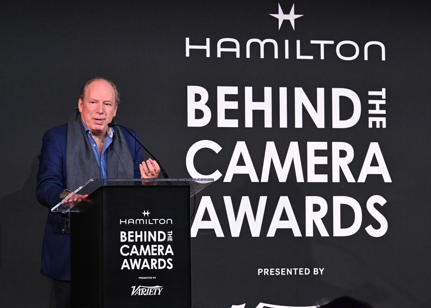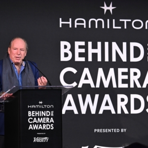 Hans Zimmer presents the Hamilton Behind the Camera Award for editing for “Dune: Part Two” at the Hamilton Behind the Camera Awards presented by Variety held at the Hollywood Athletic Club on November 14, 2024 in Los Angeles, California.