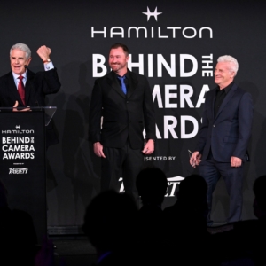 Dean Zupancic, Erik Aadahl, Ethan Van der Ryn recieve the Hamilton Behind the Camera Award for sound for “Joker: Folie à Deux” at the Hamilton Behind the Camera Awards presented by Variety held at the Hollywood Athletic Club on November 14, 2024 in Los Angeles, California.