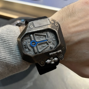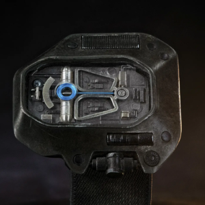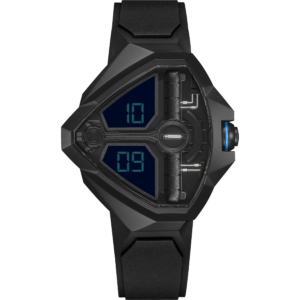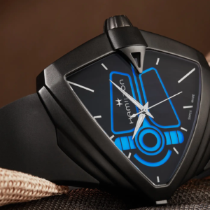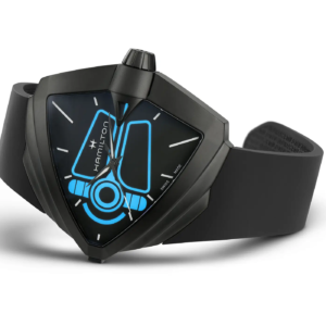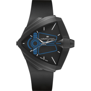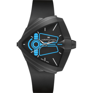 Traendo ispirazione da questo “Desert Watch”, Hamilton ha deciso di disegnare due nuovi modelli esclusivi basati sulle linee, tanto famose quanto audaci, del Ventura. Entrambi hanno sul quadrante dei dettagli nello stesso blu brillante tipico degli occhi dei Fremen, resi così dagli effetti della spezia di Arrakis. Il Ventura Bright XXL Dune Limited Edition, prodotto in 3.000 esemplari, ha una cassa da 52×46,6mm in acciaio con rivestimento PVD nero e delle normali lancette per l’indicazione dell’orario, ma sul quadrante sono riprodotte le linee dell’oggetto di scena. Ma ciò che certamente farà piacere agli appassionati di fantascienza è che premendo il tasto posizionato a ore 9 queste linee si illuminano.