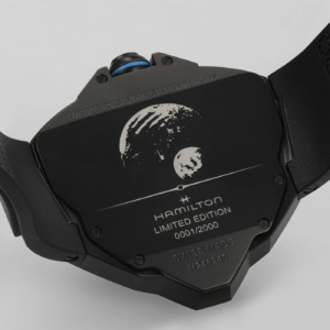 L’Hamilton Ventura Edge Dune Limited Edition, prodotto in 2.000 pezzi, ha una cassa molto più spicolosa, anch’essa con rivestimento PVD nero, con un display digitale e alcuni elementi in rilievo che replicano il design dell’oggetto di scena. Anche in questo caso il display può essere illuminato (ovviamente in blu) premendo il tasto a ore 3. Entrambi saranno venduti con una confezione celebrativa imperdibile per collezionisti e amanti del film Dune. Il prezzo di listino per il Ventura Bright XXL Dune Limited Edition è di 1.845€, mentre per il Ventura Edge si parla di 2.595€.