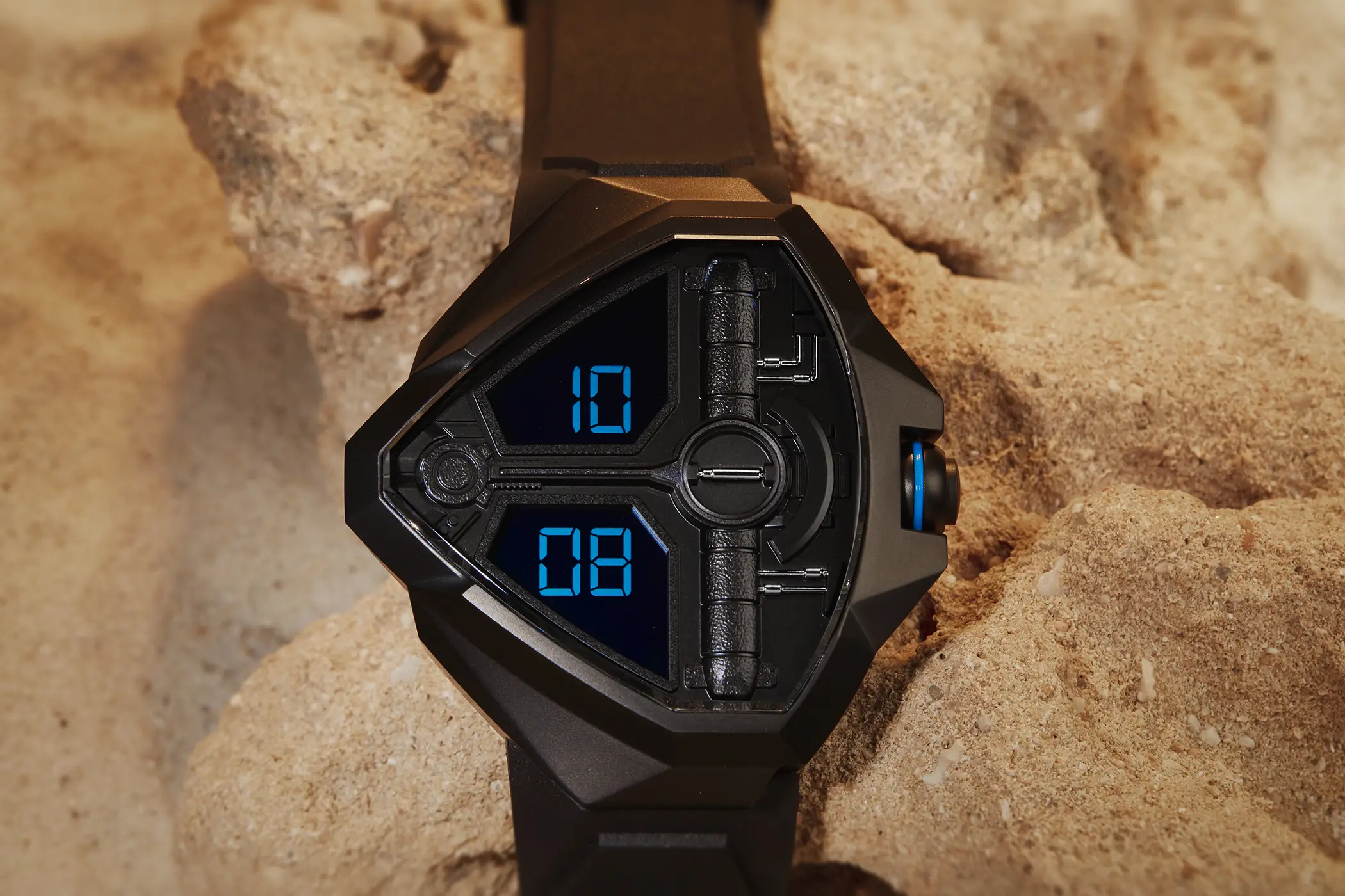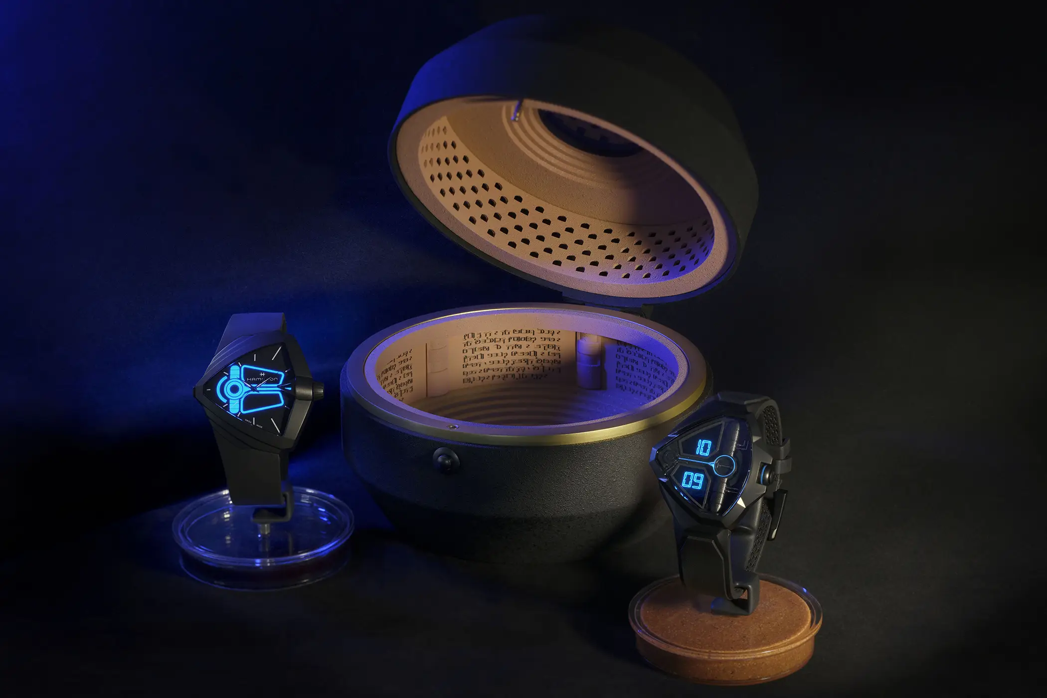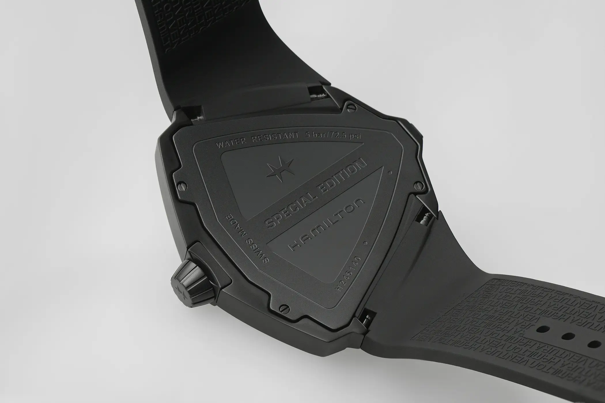 L’Hamilton Ventura Edge Dune Limited Edition, prodotto in 2.000 pezzi, ha una cassa molto più spicolosa, anch’essa con rivestimento PVD nero, con un display digitale e alcuni elementi in rilievo che replicano il design dell’oggetto di scena. Anche in questo caso il display può essere illuminato (ovviamente in blu) premendo il tasto a ore 3. Entrambi saranno venduti con una confezione celebrativa imperdibile per collezionisti e amanti del film Dune. Il prezzo di listino per il Ventura Bright XXL Dune Limited Edition è di 1.845€, mentre per il Ventura Edge si parla di 2.595€.