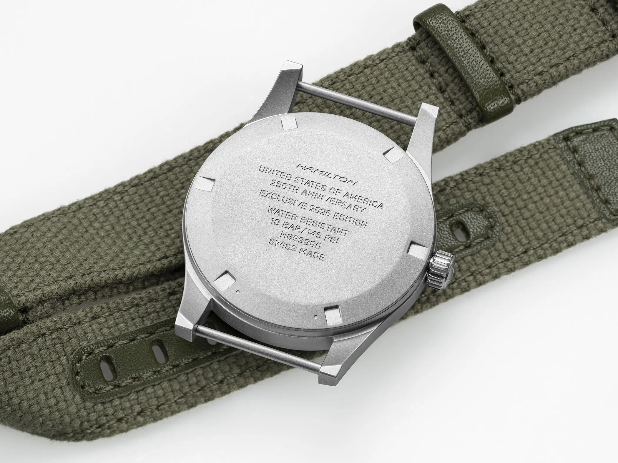Completa il pacchetto un cinturino NATO in tessuto, perfettamente in linea con lo spirito militare del modello e scelta quasi obbligata con le anse fisse. Questa edizione sarà prodotta esclusivamente nel 2026, come omaggio ai 250 anni della Dichiarazione d’Indipendenza degli Stati Uniti, a sottolineare ancora una volta il legame tra Hamilton Watch Company e le sue radici americane. Il prezzo suggerito al pubblico è di 675 €, una proposta che punta dritta al cuore degli appassionati di orologeria militare.
