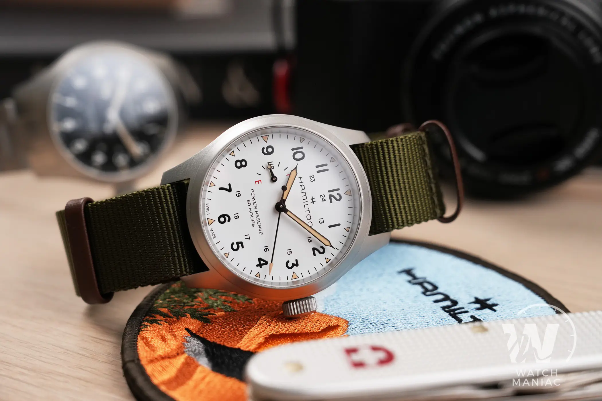 Per entrambe le colorazioni la finitura del quadrante è opaca, in perfetto stile field watch. L’impostazione generale della grafica rimane quella classica per Hamilton, con indici a numeri arabi dalla leggibilità impareggiabile grazie al massimo contrasto garantito dall’accostamento tra nero e bianco, indipendentemente dalla variante scelta. Come su tante altre referenze Khaki Field, anche qui sono riportate in piccolo all’interno le ore pomeridiane, mentre all’esterno ci sono dei piccoli triangoli realizzati in SuperLuminova “old radium”.