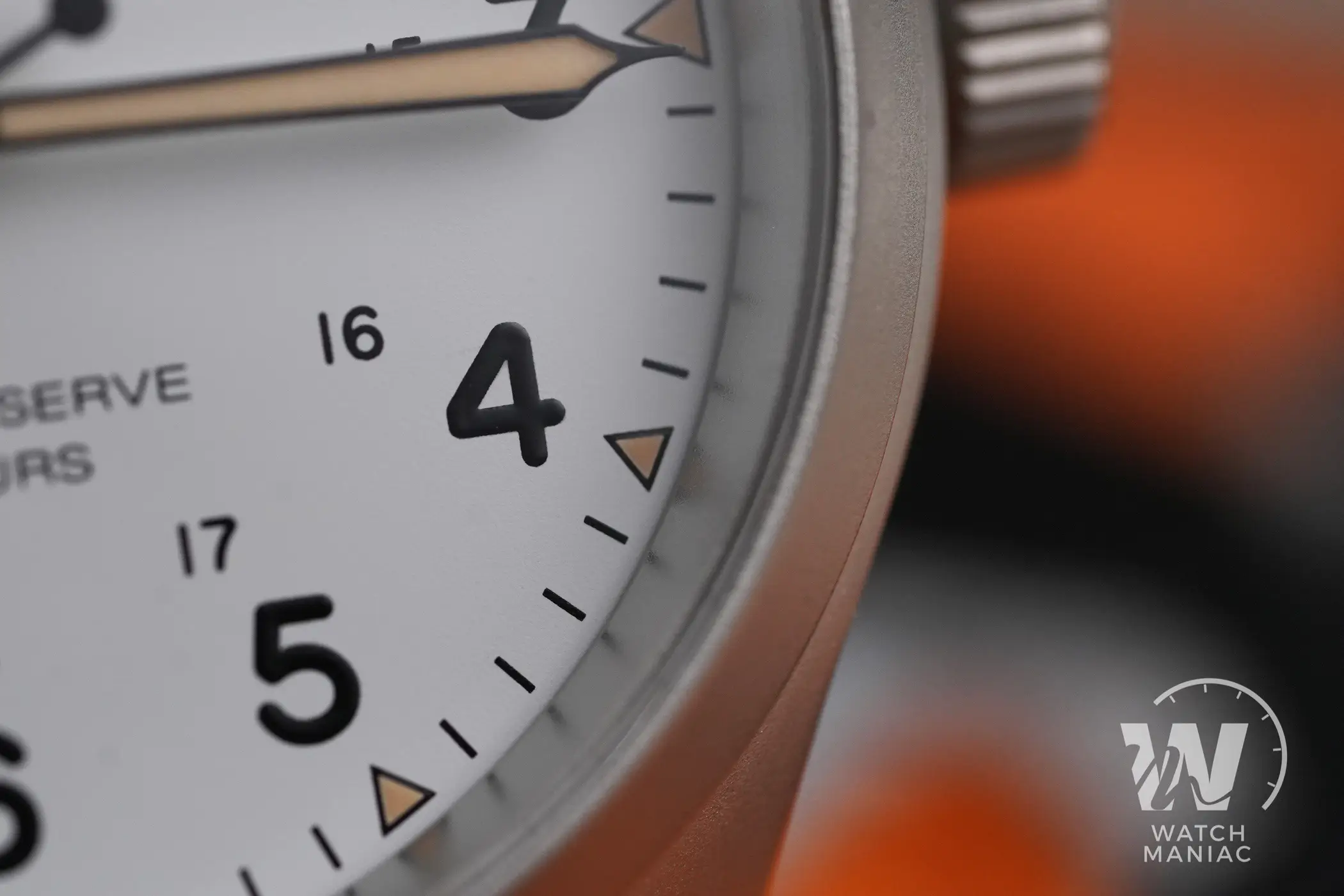 Il nuovo Hamilton Khaki Field Power Reserve ha delle dimensioni che personalmente reputo perfette. Il diametro è un po’ più grande rispetto ai 38mm dei Mechanical, ma le anse hanno un design più ergonomico e il quadrante, in parte occupato dall’indicatore della riserva di carica, non risulta eccessivamente grande neppure nella colorazione bianca. Lo spessore poi non si fa sentire, soprattutto in abbinamento con l’ottimo bracciale in acciaio. Il diametro è di 40mm, la distanza da ansa ad ansa è di 47,5mm, lo spessore è di 12,3mm (compresa la lieve sporgenza del vetro) e il peso con il cinturino è di 80g mentre con il bracciale regolato per un polso da 16cm è di 128g.