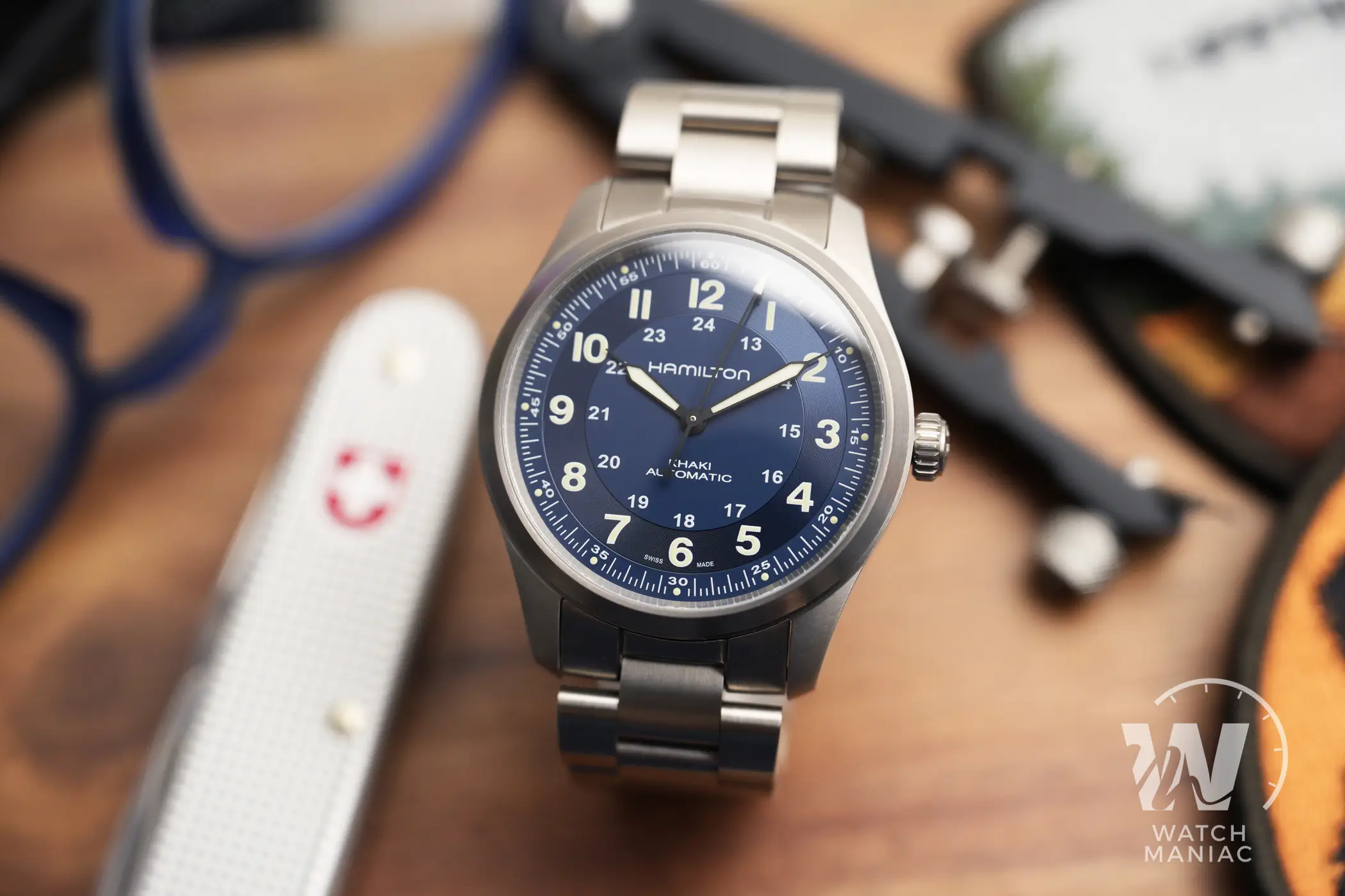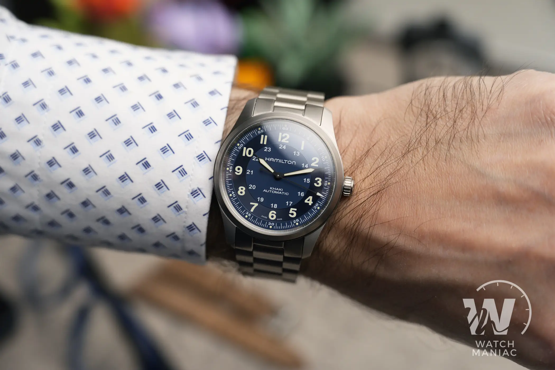 Quello dei “field watch” è un genere storicamente molto importante per Hamilton e quindi non è sorprendente che, ancora oggi, molte nuove referenze rientrino nella famiglia Khaki Field. Comunque, pur rimanendo all’interno di un filone stilistico ben preciso, si può spaziare tra modelli con caratteristiche molto differenti tra loro. Questo è sempre un approccio corretto dato che ciascuno di noi ha le proprie idee e le proprie esigenze e quel che potrebbe essere irrinunciabile per qualcuno, è possibile che sia un elemento del tutto ininfluente per qualcun altro. Il Khaki Field Titanium era disponibile inizialmente solo nella misura da 42mm, poi successivamente sono arrivate le versioni da 38nm e solo recentemente sono state aggiunte le referenze con bracciale in titanio.