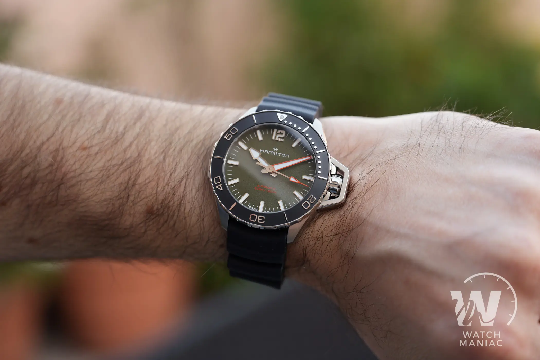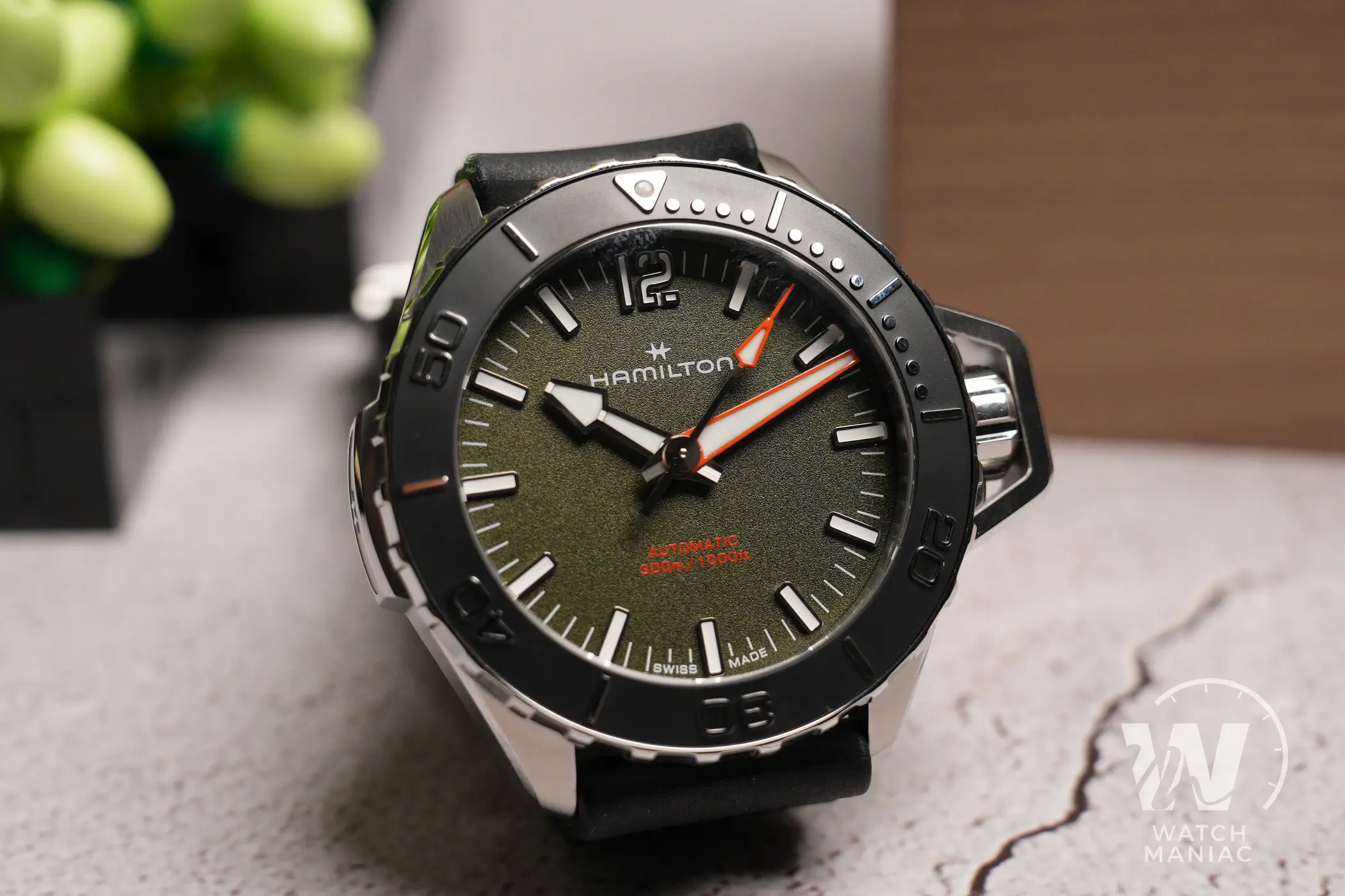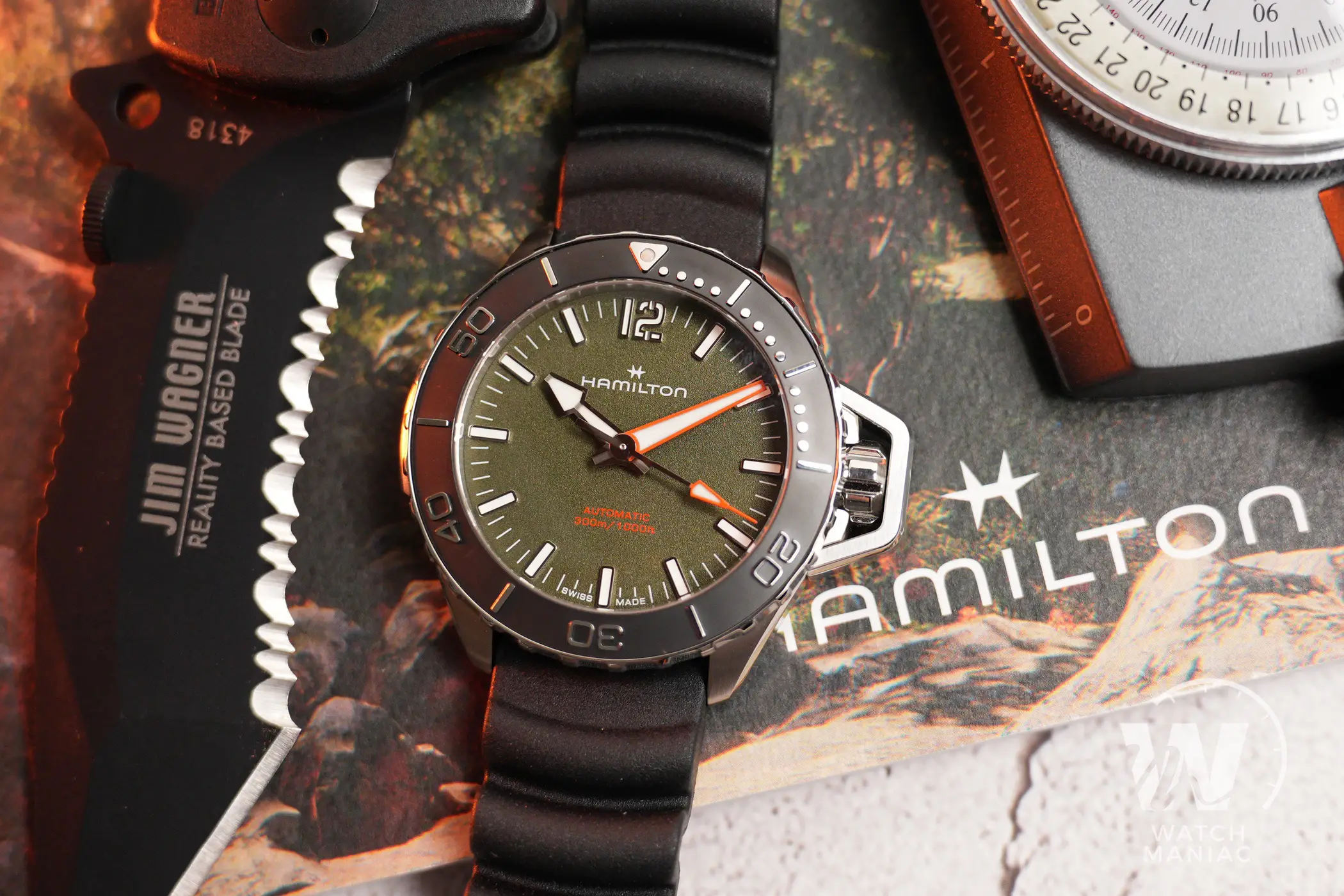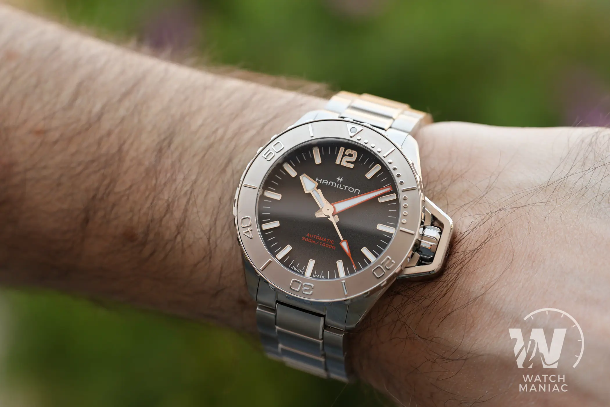 Lo scorso anno Hamilton ha presentato il nuovo Frogman con un design che si discosta parecchio dalle referenze precedenti e una sorprendente vestibilità (se rapportata ai numeri della scheda tecnica) grazie al design compatto delle anse e allo spessore limitato della cassa. Però i 46mm non sono di certo per tutti i polsi e per tutti i gusti, quindi, per quanto sorprendentemente comodo, mancava un’alternativa un po’ più compatta per accontentare un maggior numero di appassioati. Nel 2023 Hamilton completa l’opera con il Frogman da 41mm: scopriamolo insieme!