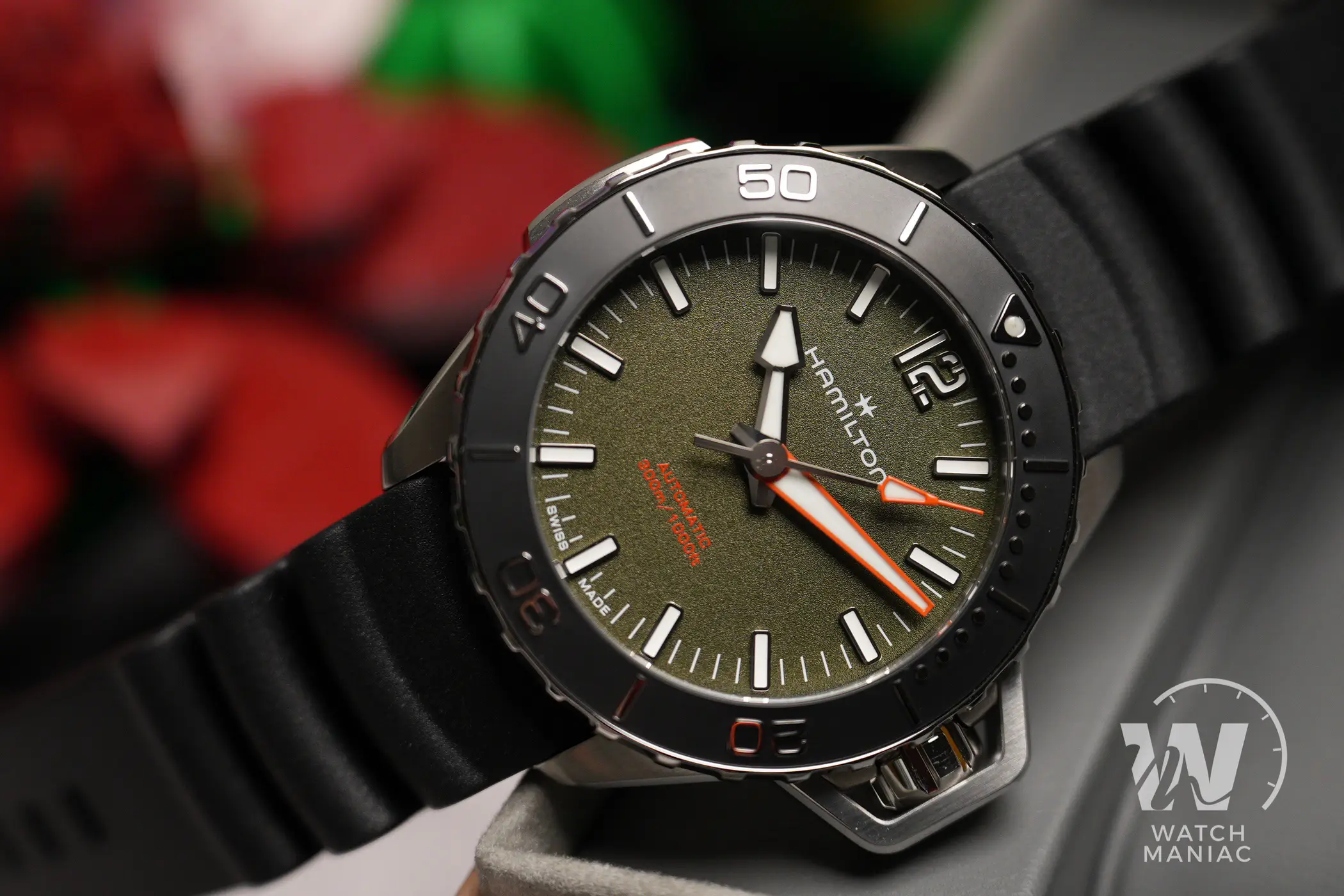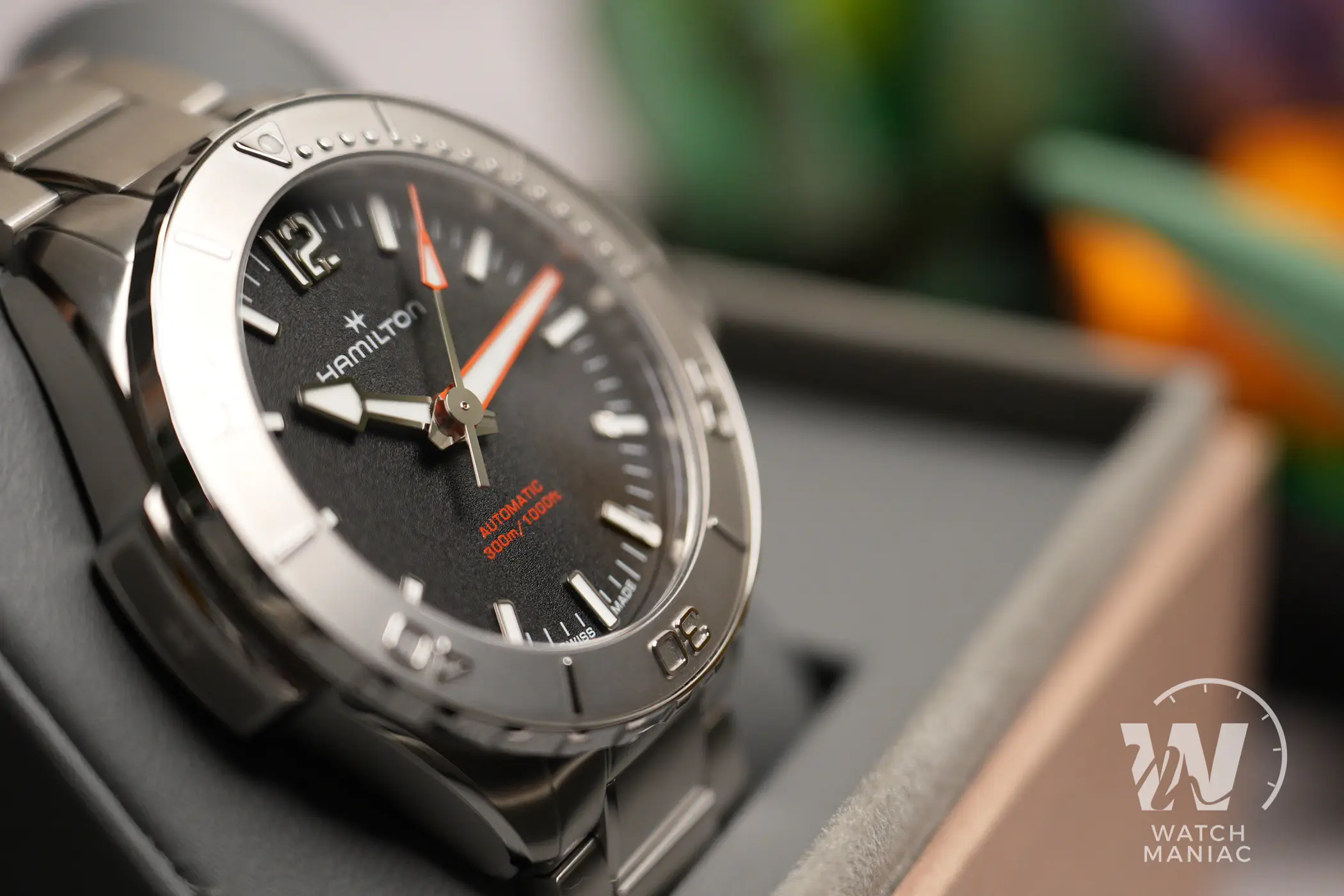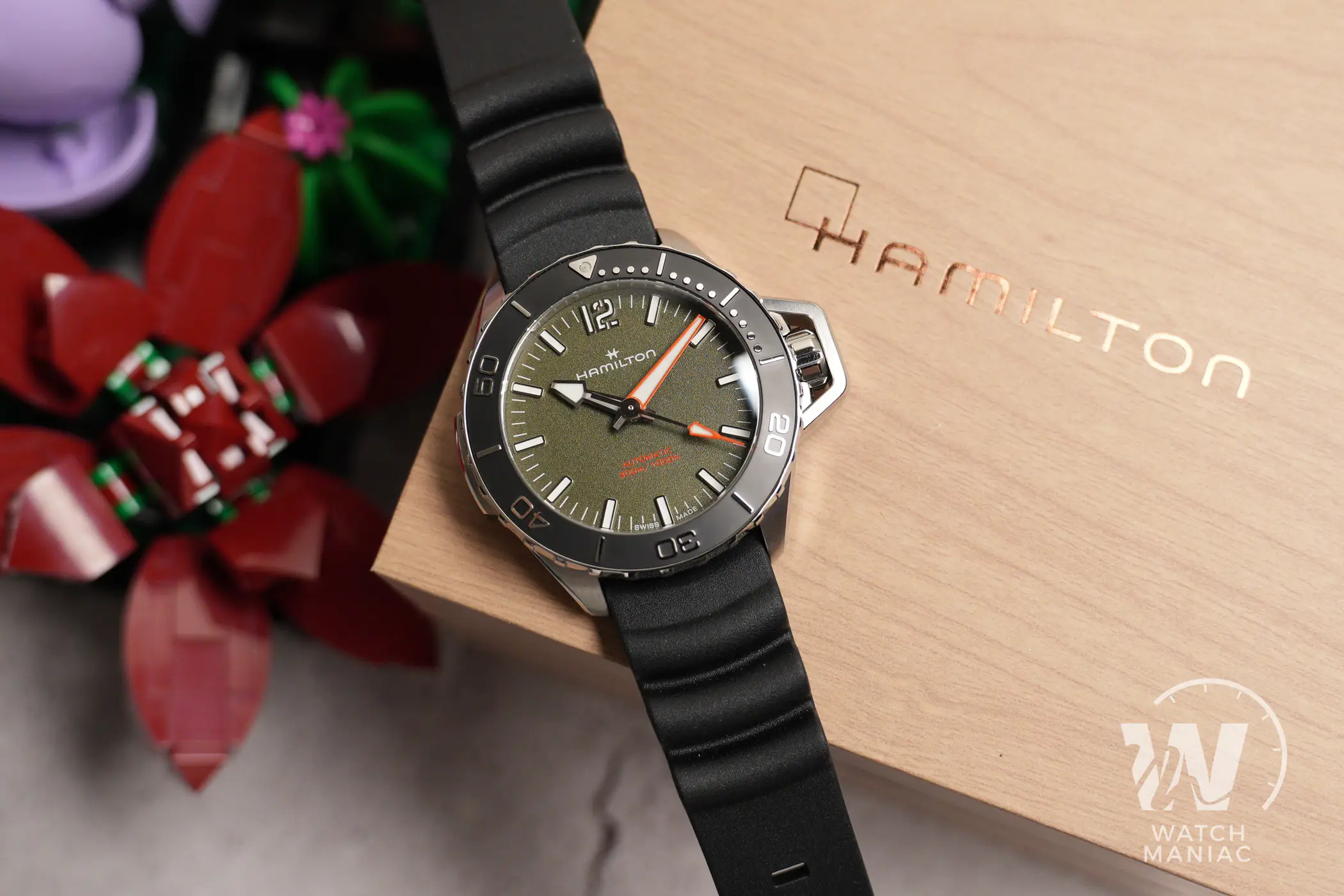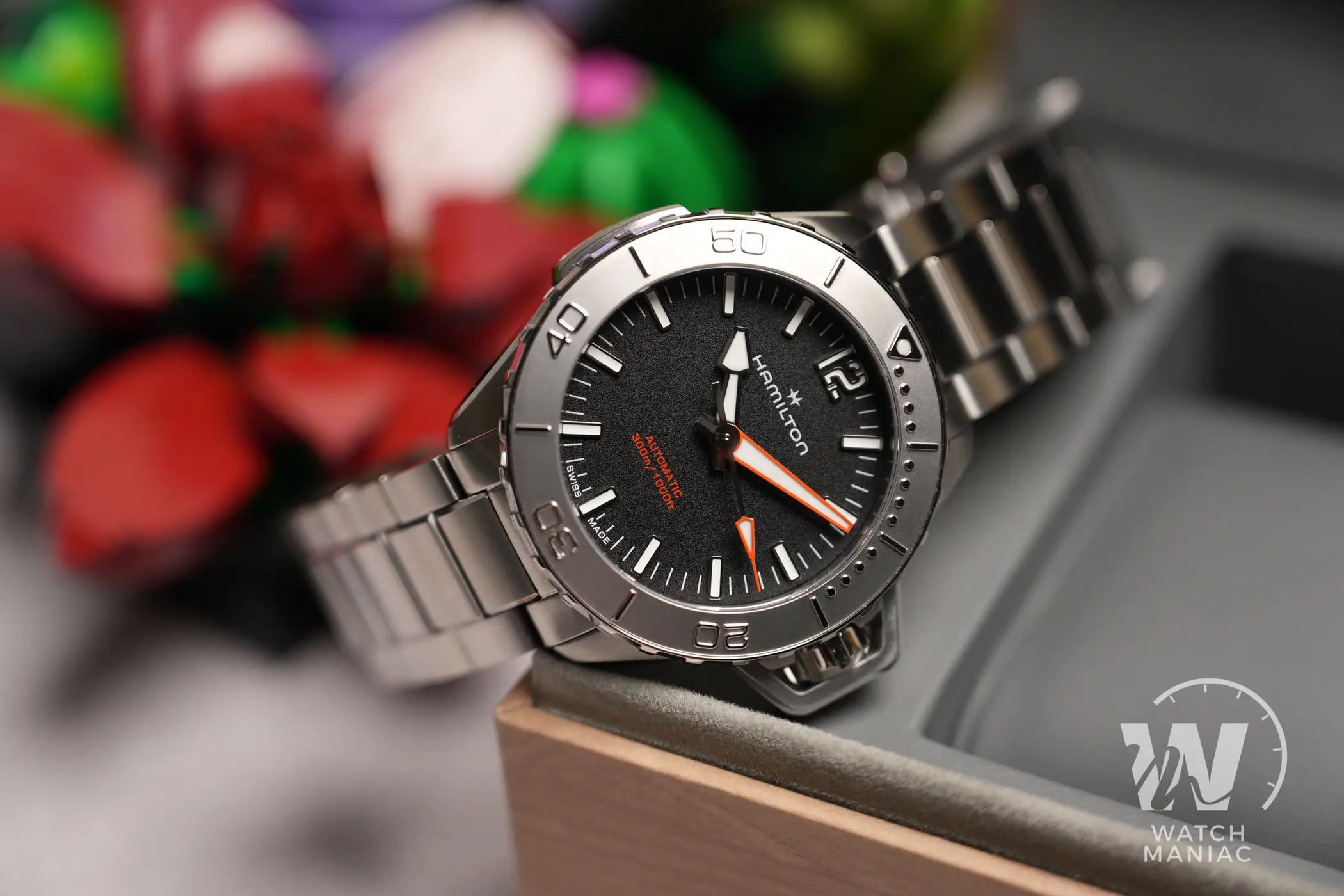 Lo scorso anno Hamilton ha presentato il nuovo Frogman con un design che si discosta parecchio dalle referenze precedenti e una sorprendente vestibilità (se rapportata ai numeri della scheda tecnica) grazie al design compatto delle anse e allo spessore limitato della cassa. Però i 46mm non sono di certo per tutti i polsi e per tutti i gusti, quindi, per quanto sorprendentemente comodo, mancava un’alternativa un po’ più compatta per accontentare un maggior numero di appassioati. Nel 2023 Hamilton completa l’opera con il Frogman da 41mm: scopriamolo insieme!