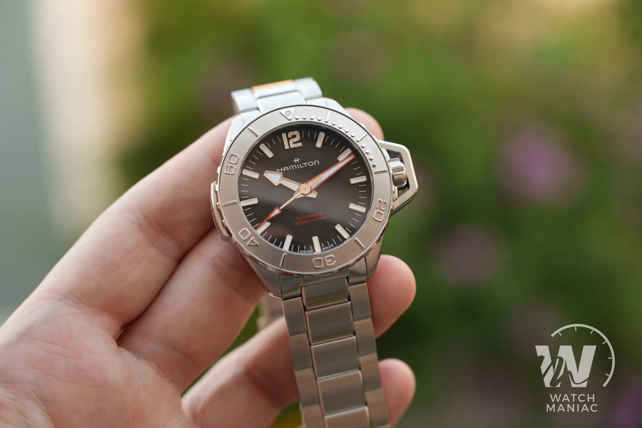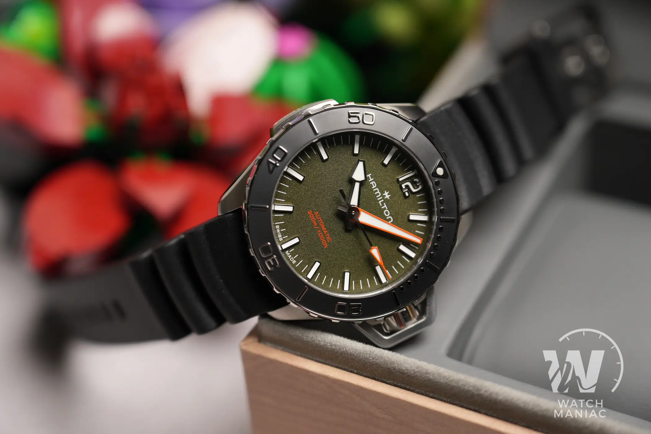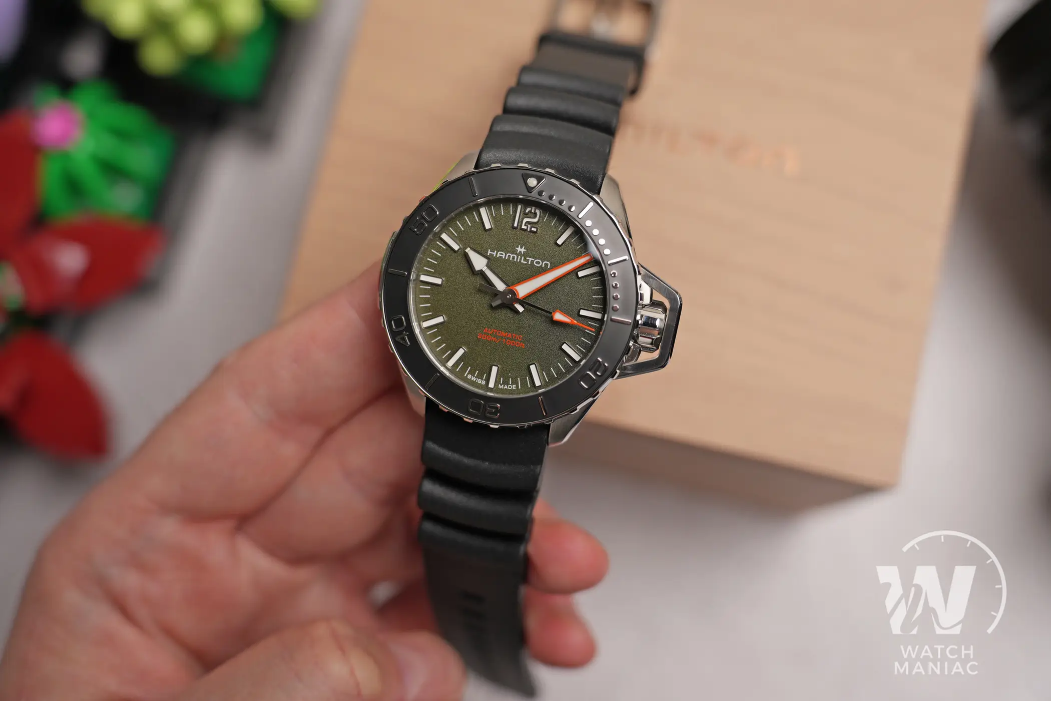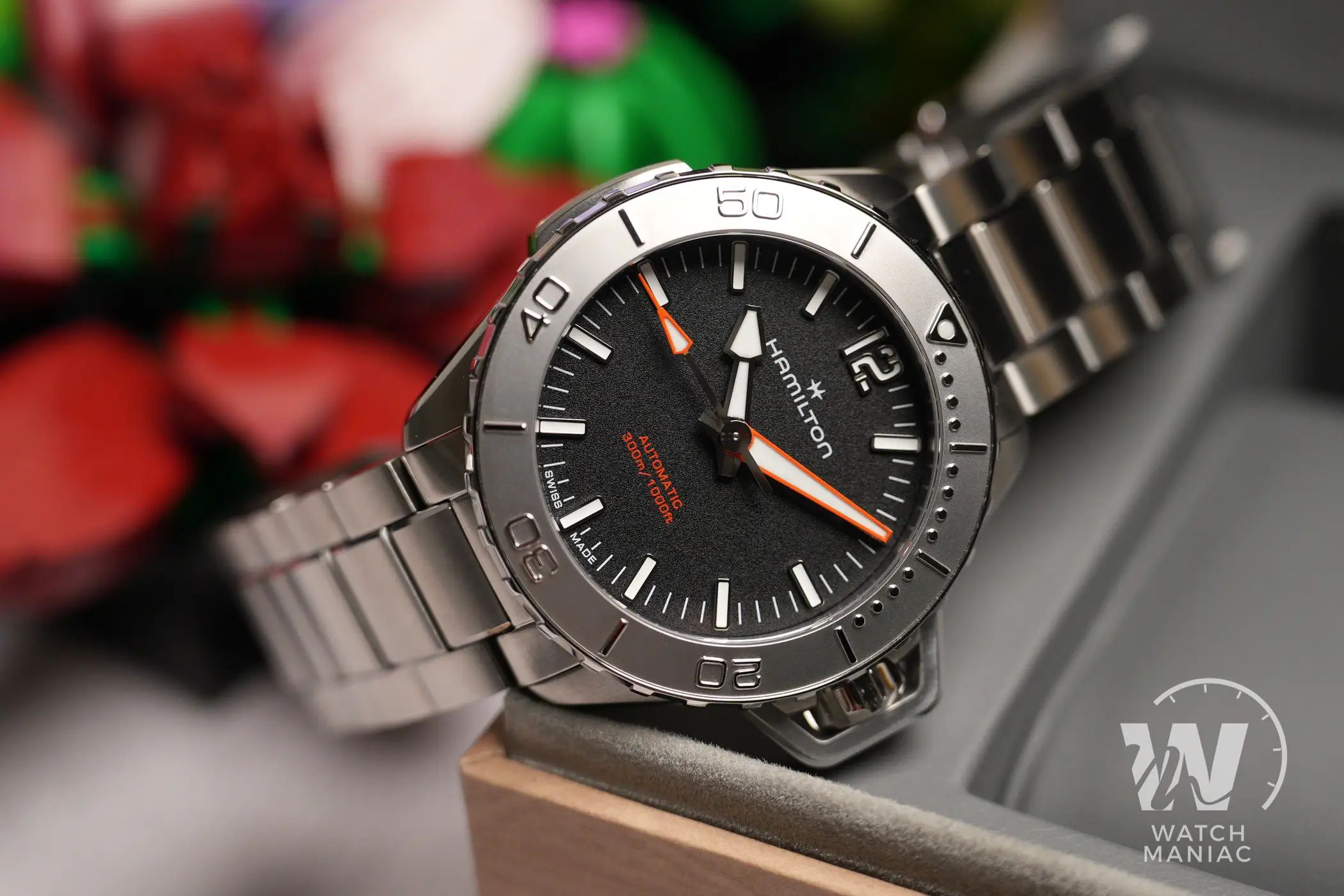 Lo scorso anno Hamilton ha presentato il nuovo Frogman con un design che si discosta parecchio dalle referenze precedenti e una sorprendente vestibilità (se rapportata ai numeri della scheda tecnica) grazie al design compatto delle anse e allo spessore limitato della cassa. Però i 46mm non sono di certo per tutti i polsi e per tutti i gusti, quindi, per quanto sorprendentemente comodo, mancava un’alternativa un po’ più compatta per accontentare un maggior numero di appassioati. Nel 2023 Hamilton completa l’opera con il Frogman da 41mm: scopriamolo insieme!