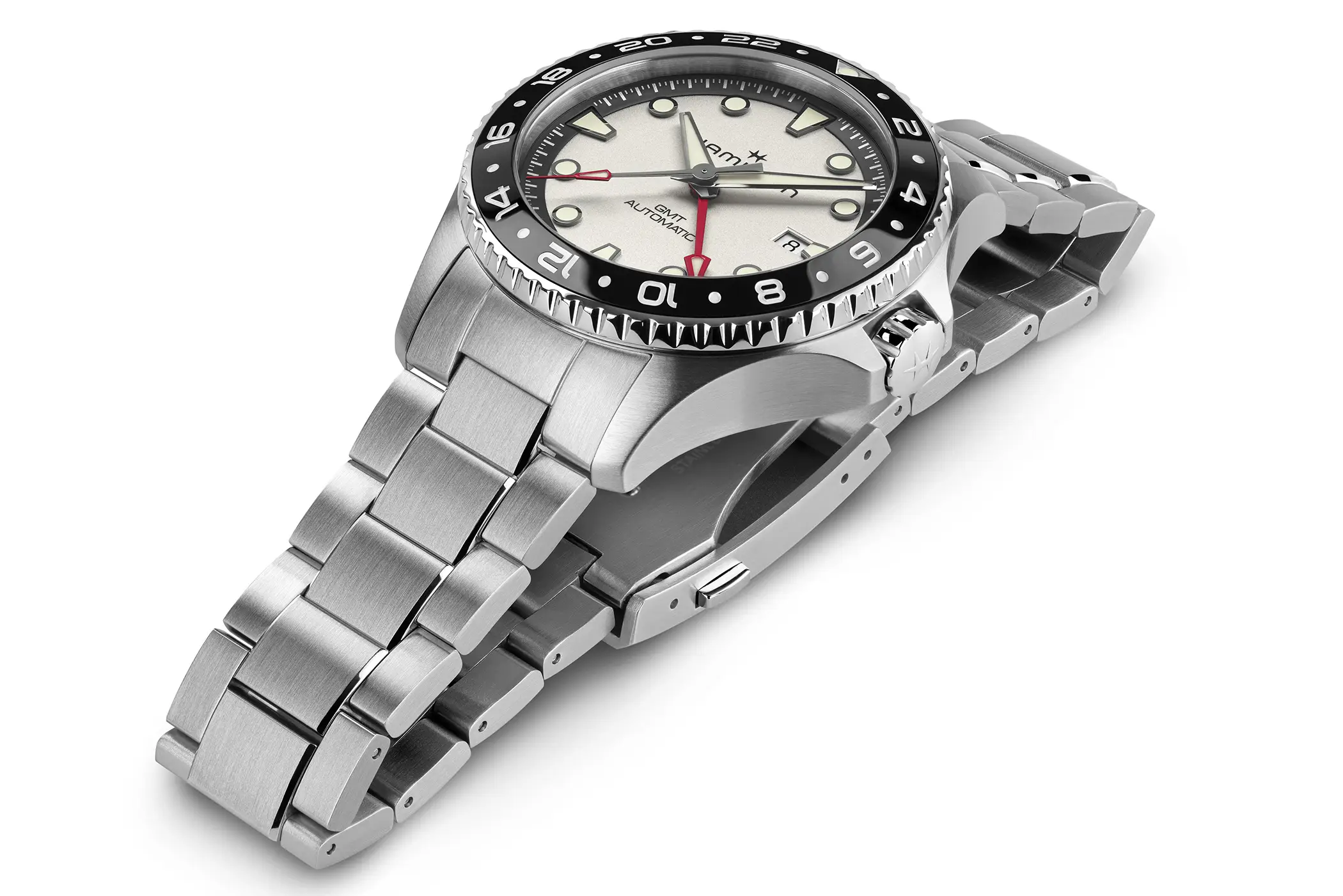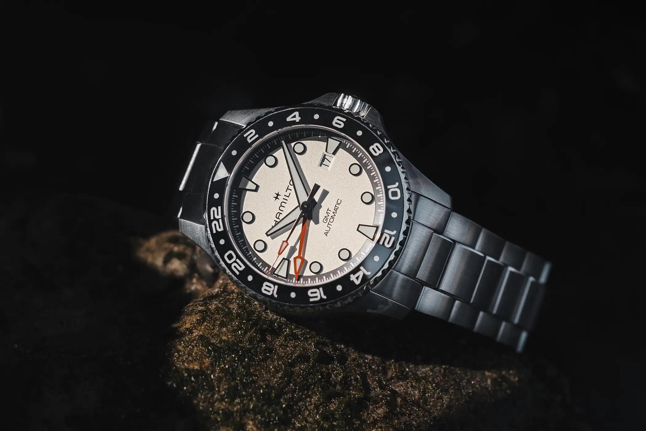 Ora Hamilton aggiunge un altro tassello inserendo in collezione una nuova versione del Khaky Navy Scuba da 43mm con funzione GMT proposto in due diversi materiali per la cassa.