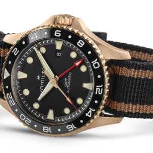 Hamilton ha da sempre l’obiettivo di proporre buoni orologi a prezzi interessanti. Il Khaki Navy Scuba GMT Automatic è la scelta giusta per chi cerca un orologio adatto a qualsiasi condizione, con la possibilità di optare anche per la versione con cassa in bronzo.