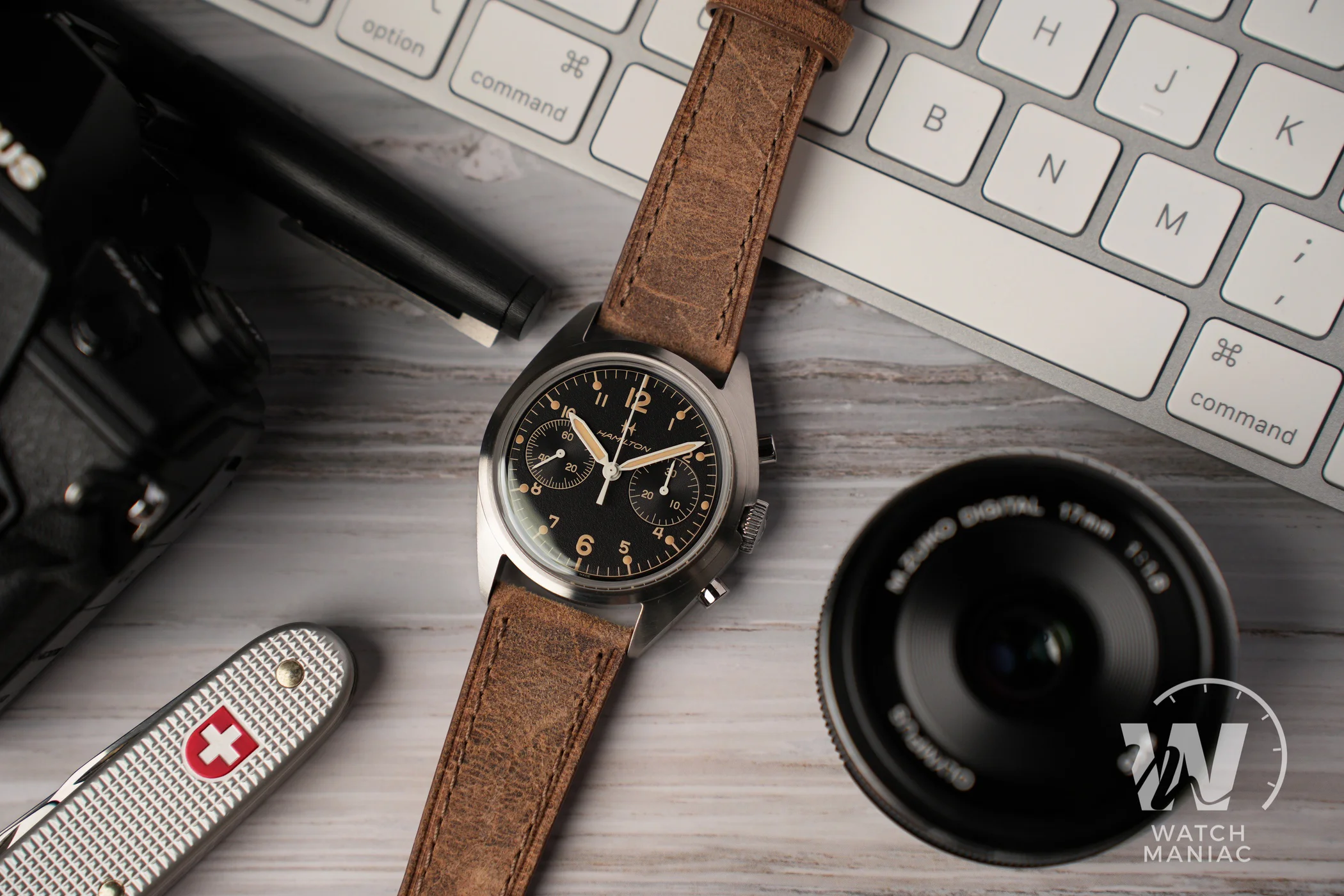 Di cronografi aeronautici ce ne sono tantissimi sul mercato, anche nel catalogo della stessa Hamilton. Tra l’altro qualche anno fa era stata proposto un modello con una cassa praticamente identica ma con movimento automatico, eppure solo questa è la riedizione reale dei Fab Four. La qualità c’è tutta e l’uscita di questa nuova referenza aggiunge una validissima alternativa sia al sempre apprezzatissimo Intra Matic, sia al Longines Big Eye. Quest’ultimo utilizza sicuramente un calibro più sofisticato con ruota a colonne, pur derivando sempre dal Valjoux 7753, ma a seguito degli ultimi aumenti è arrivato a poco meno di 3.000€ di listino. Nel caso dell’Hamilton Khaki Pilot Pioneer Mechanical Chronograph il listino ufficiale è di 2.195€.