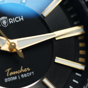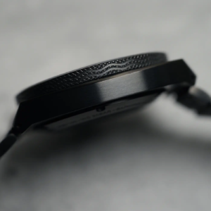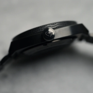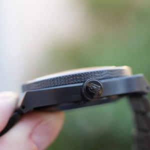 La corona a ore 3 ha il logo al centro, è a vite e la filettatura è molto precisa sia in apertura che in serraggio. È un po’ voluminosa se rapportata alla cassa, ma comunque non dà fastidio al dorso della mano durante il normale utilizzo. Il fondello ha una bella decorazione al centro, resa ancora più interessante nella variante con cassa senza rivestimento DLC perché è stato inserito dello smalto nero lucido. Tra tutte le varie informazioni incise è riportato anche il dato sull’impermeabilità fino a 200m di profondità.