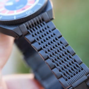 Un altro punto di forza di Heinrich è dato dal bracciale, che resta sostanzialmente lo stesso per la maggior parte dei modelli a catalogo. Con il suo design a 13 elementi centrali sottili è molto caratteristico e unisce una buona solidità ad un peso relativamente contenuto. Le maglie sono tenute insieme da perni a vite e a finitura è interamente satinata, con o senza il rivestimento DLC.