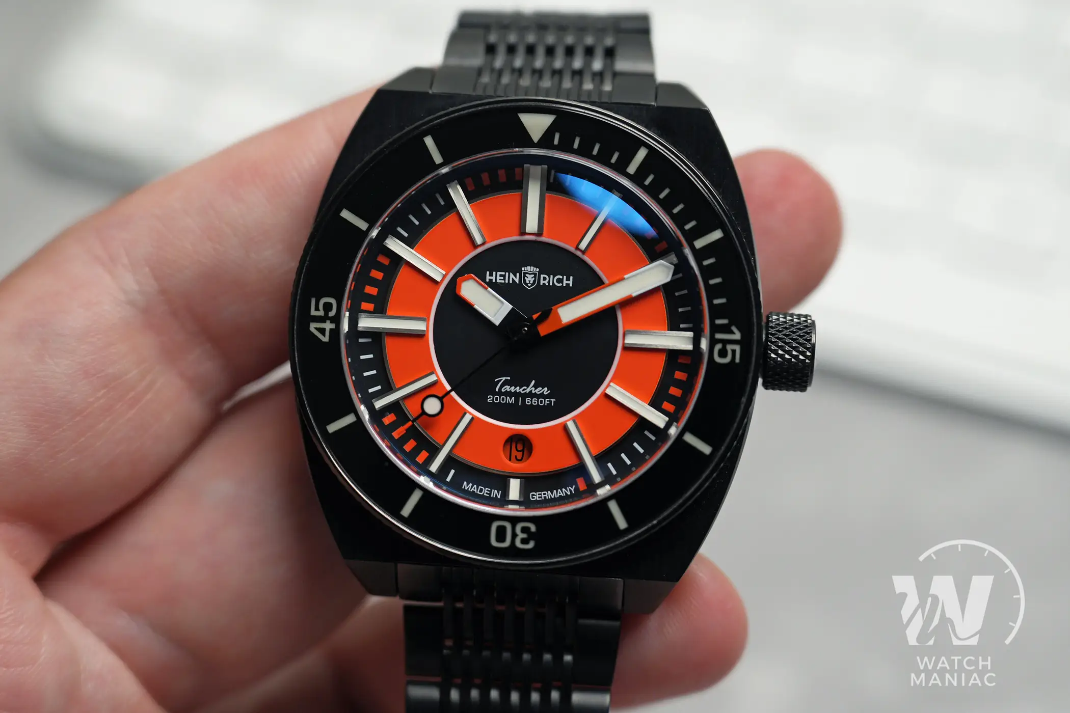 Al momento il catalogo di Heinrich non presenta forse la varietà di referenze tipica di altri microbrand, ma questo marchio tedesco è davvero molto interessante e da tenere d’occhio. Tra l’altro è degna di nota la scelta di costruire interamente gli orologi a Pforzheim, una delle città più importanti per la tradizione orologiera tedesca (insieme a Glashütte). Il design può piacere o meno, come sempre, ma si tratta di orologi di qualità e con uno stile molto originale. Tra i due quadranti è davvero bello quello con dettagli rossi del Taucher Sport .