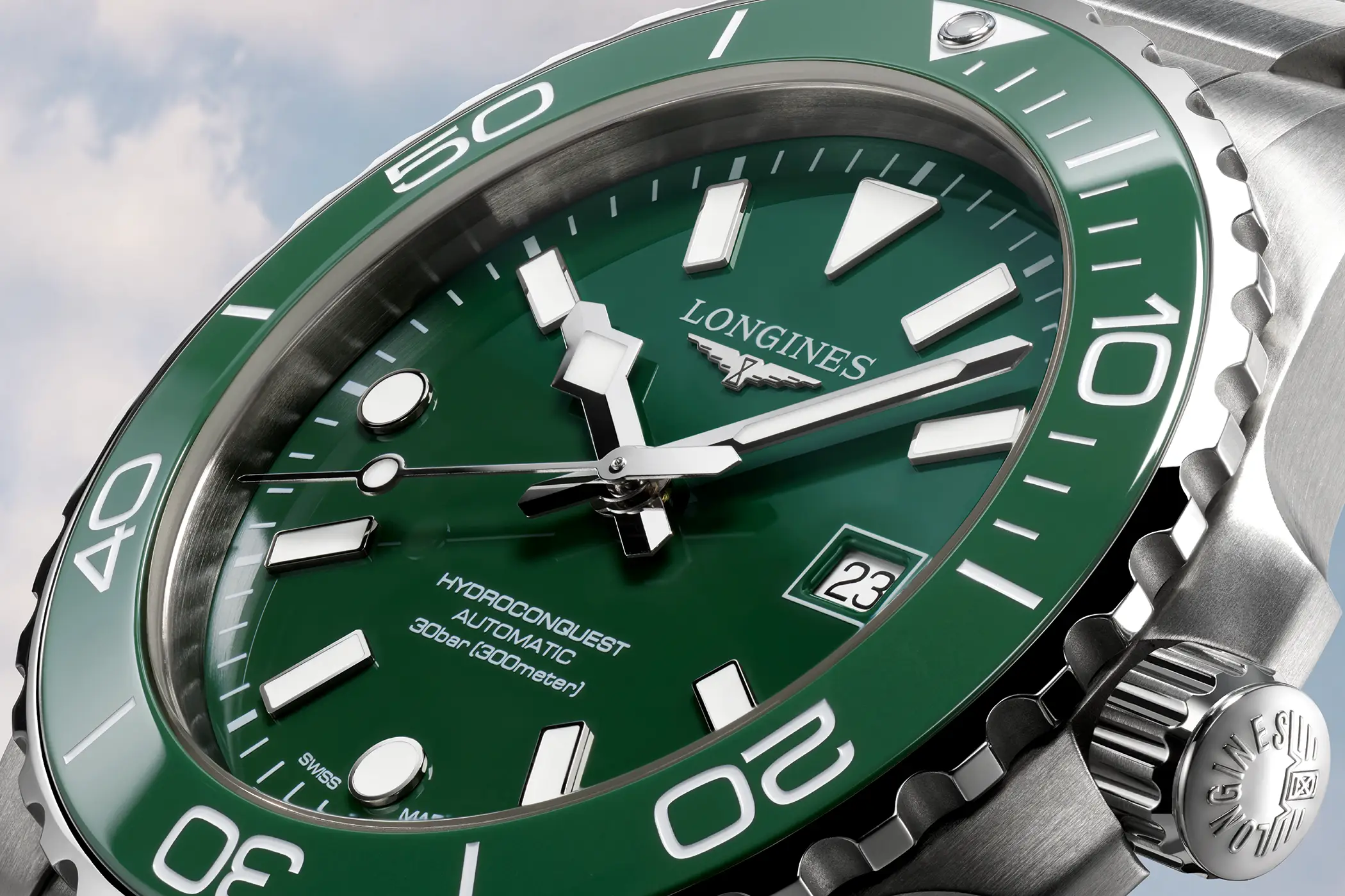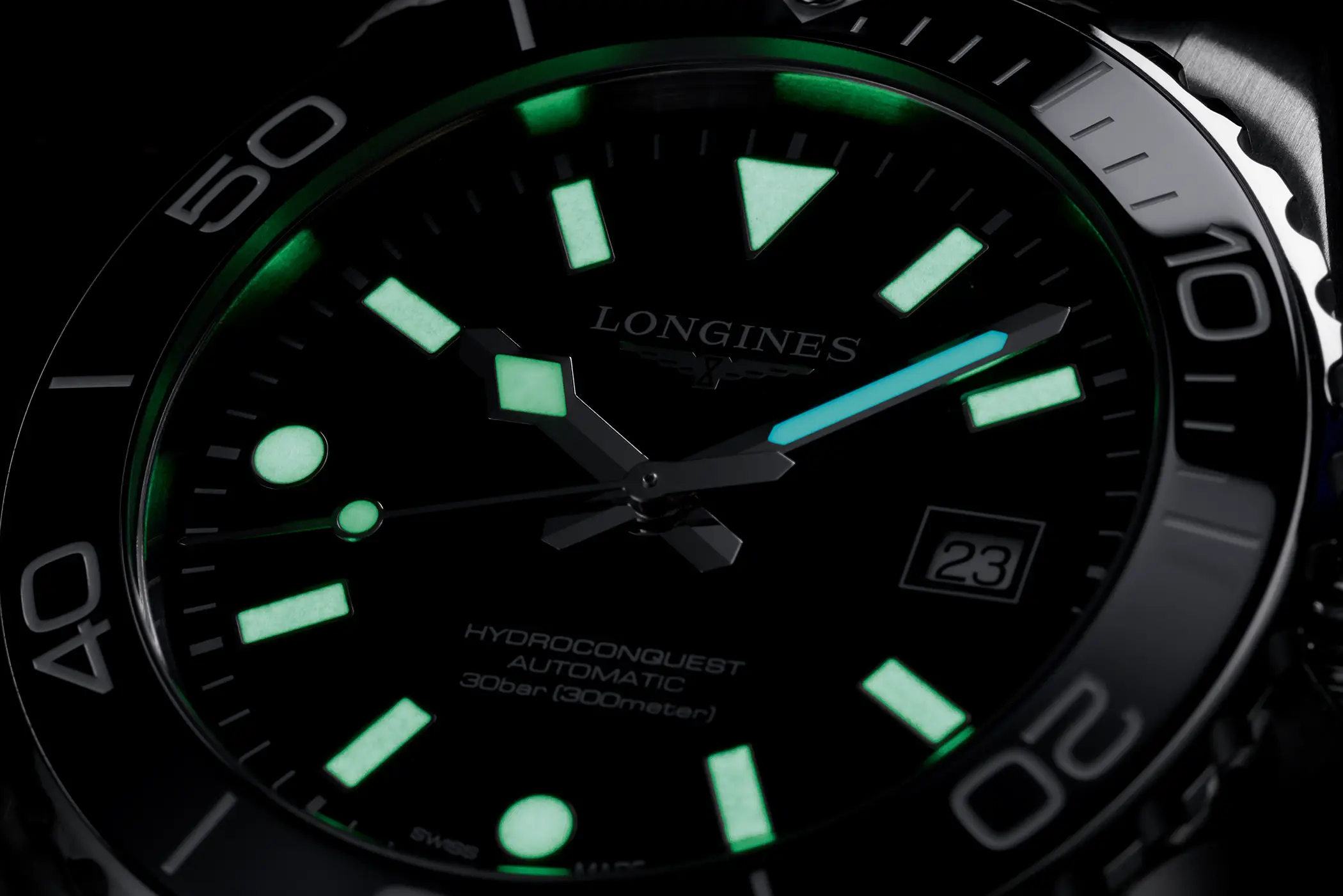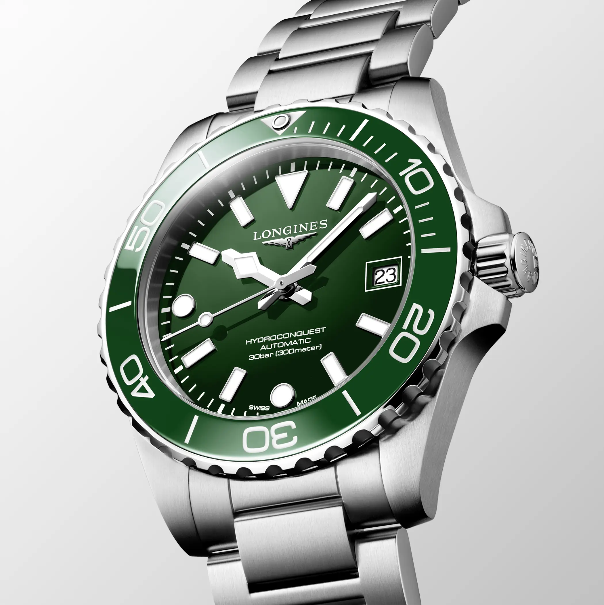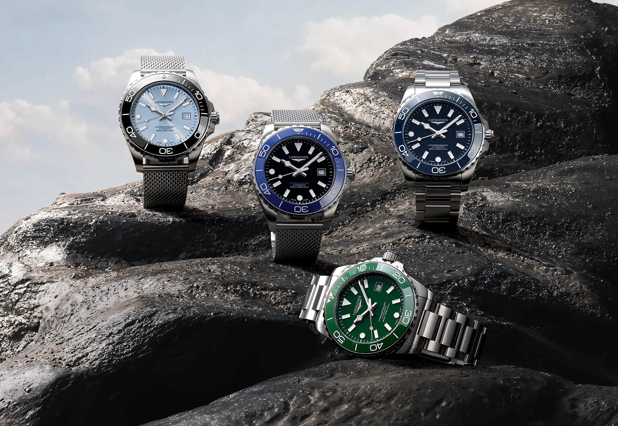 L’Hydroconquest affonda le sue radici nella famiglia Conquest, la prima linea di Longines a ottenere la protezione del marchio in Svizzera nel 1954. Nato come “l’orologio di tutti i giorni”, Conquest divenne ben presto uno standard di riferimento, un segnatempo versatile e affidabile. Nel 2007 debutta Hydroconquest: la volontà di Longines fu quella di proporre una linea sportiva, con un’impermeabilità fino a 300 metri, che ha nell’acqua il suo ambiente naturale, ma che non rinuncia a raffinatezza e sobrietà tipiche della casa svizzera.