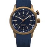 La cassa è disponibile in acciaio o in bronzo. Nel primo caso è possibile scegliere la variante con quadrante bianco e dettagli blu, o la più classica in nero con dettagli arancioni. Per gli amanti della patina c’è invece la limited edition in soli 500 pezzi con quadrante blu e finitura granulosa che si abbina alla tonalità calda del bronzo.