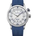 Rispetto al suo predecessore la versione attuale presenta misure più contenute: il diametro della cassa è stato ridotto a 42mm, l’impermeabilità arriva fino a 30bar e lo spessore si ferma a 13mm. Completano il tutto il vetro zaffiro con trattamento antiriflesso e il fondello a vite.