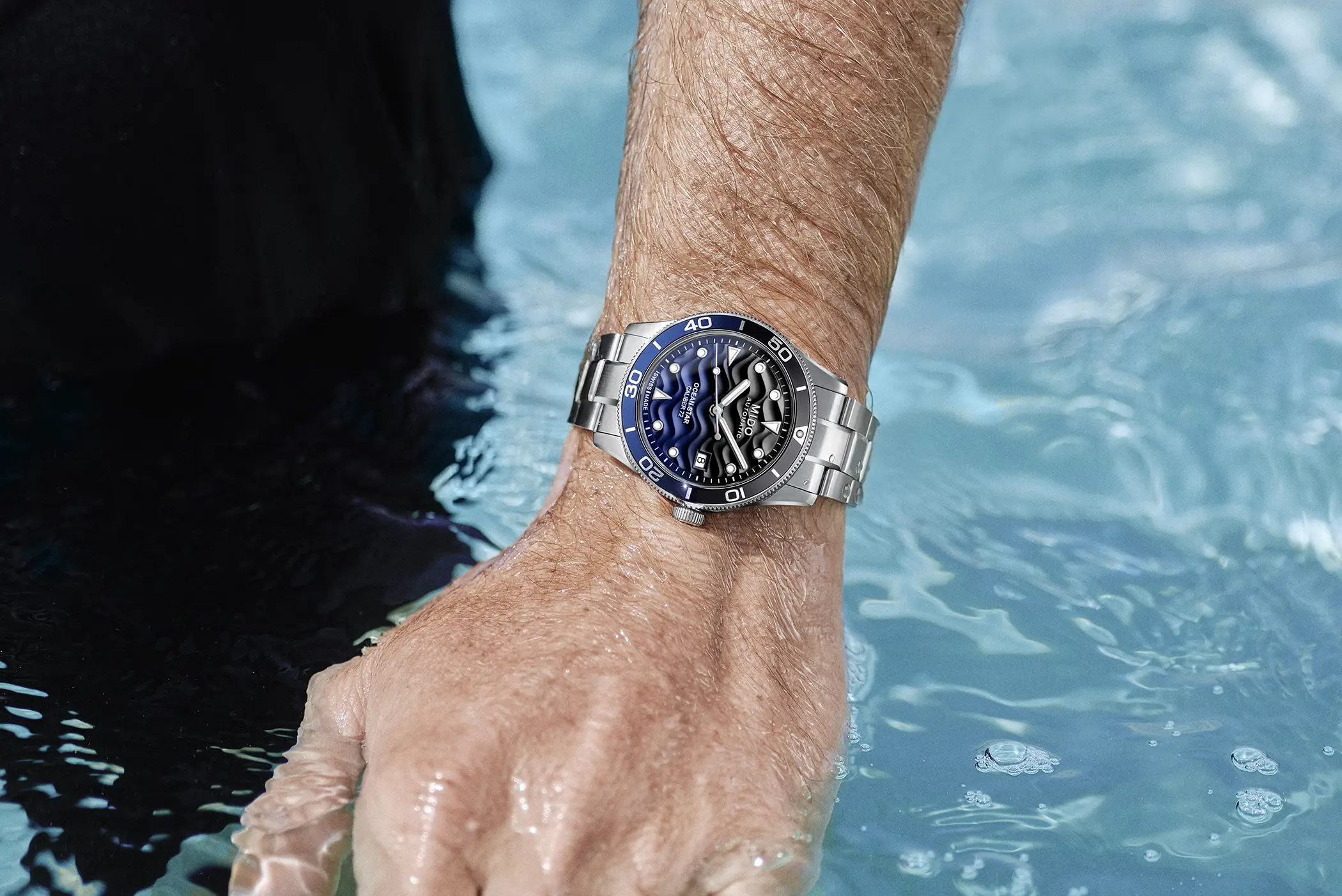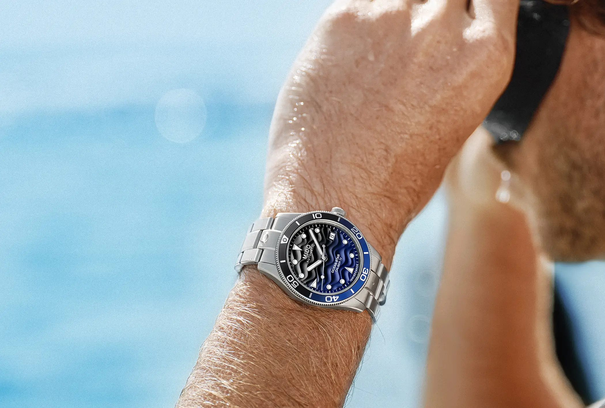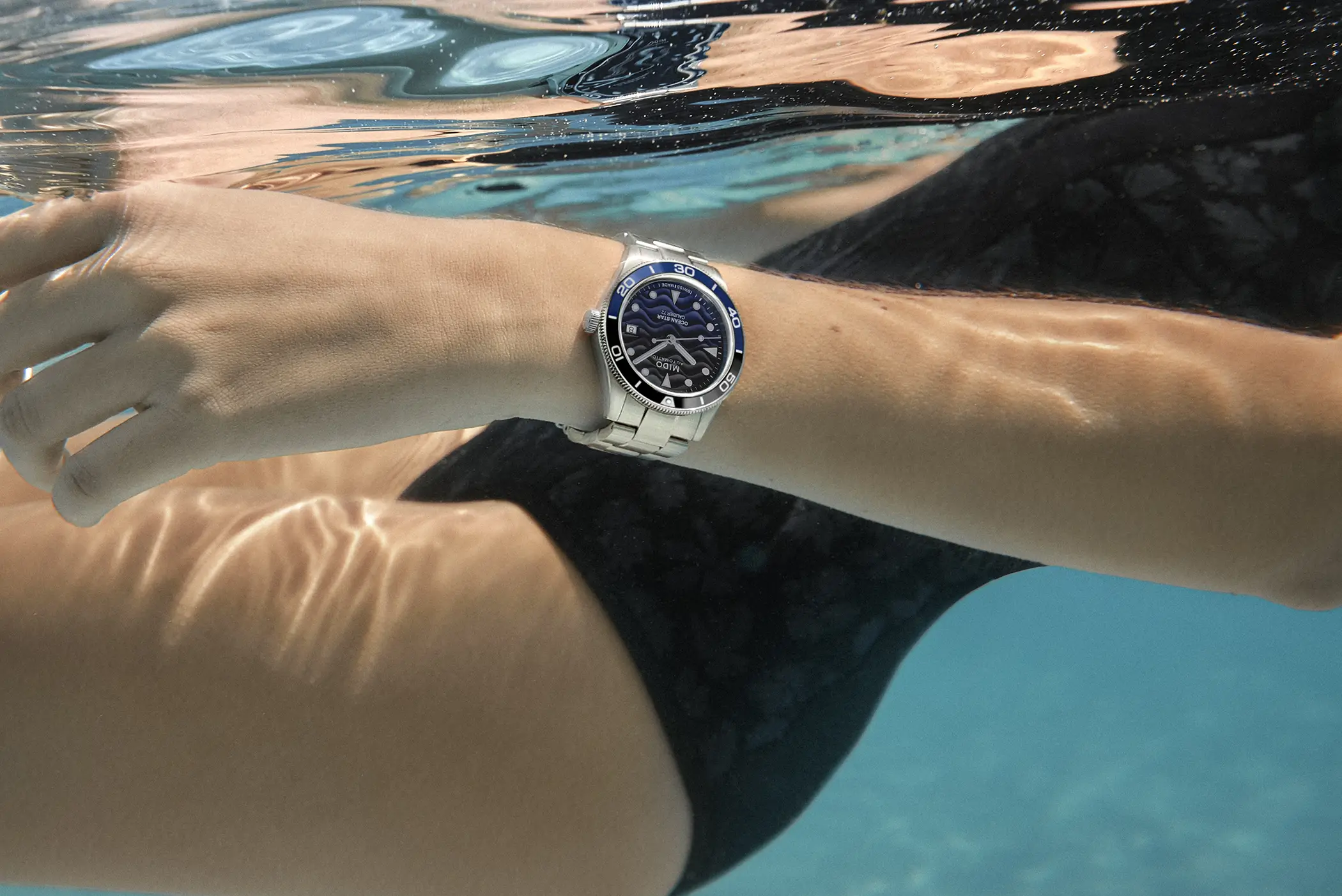Nonostante le caratteristiche tecniche di tutto rispetto, sono le scelte stilistiche di MIDO a rapire lo sguardo. Il quadrante ha un originale motivo ondulato in rilievo a richiamare le onde marine. Gli indici applicati sono rotondi e di dimensioni generose per garantire una leggibilità ottimale. Su di essi, come sulle sfere di ore e minuti, trova spazio una buona dose di Superluminova, che consente la lettura dell’ora anche al buio.