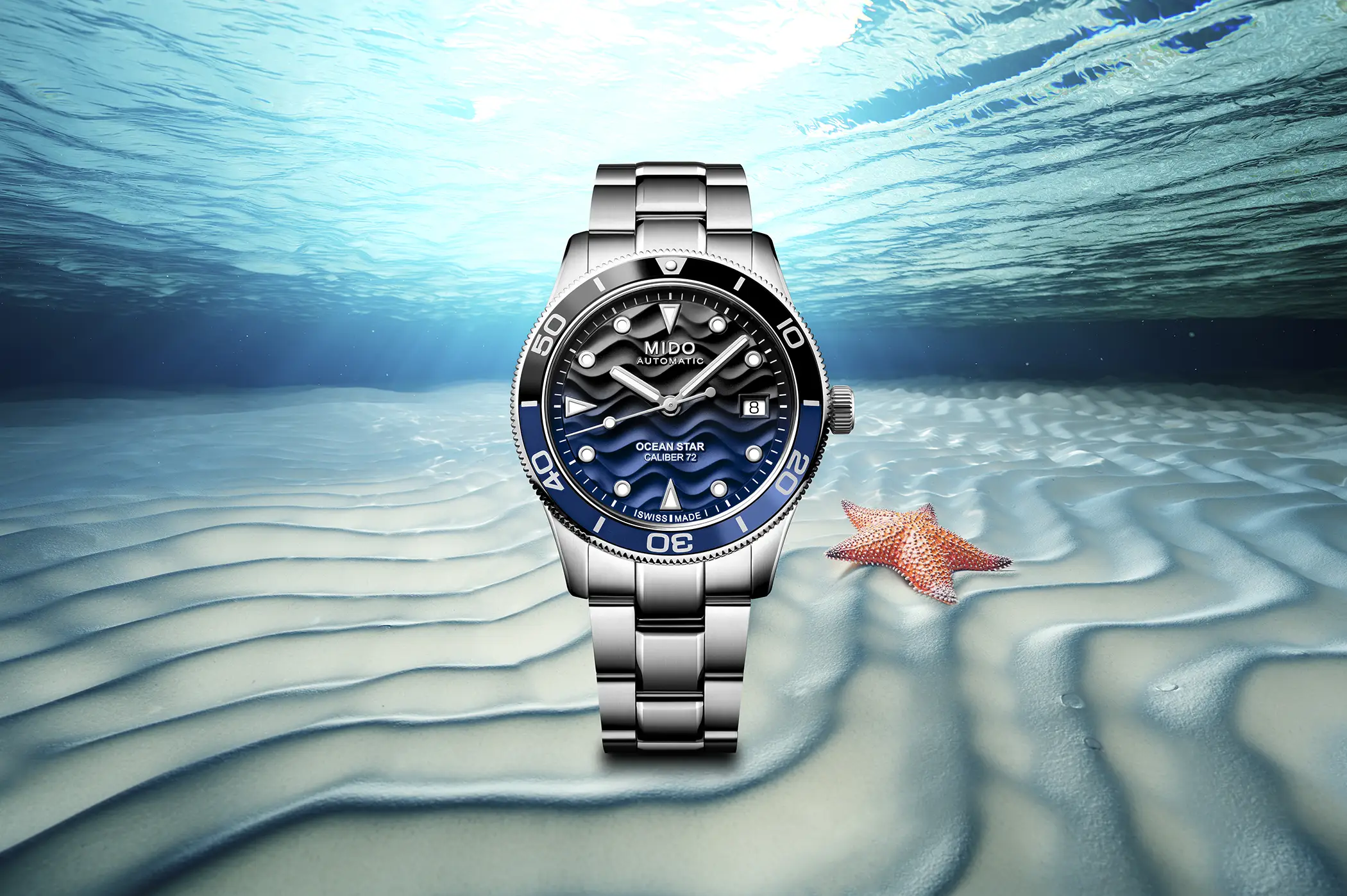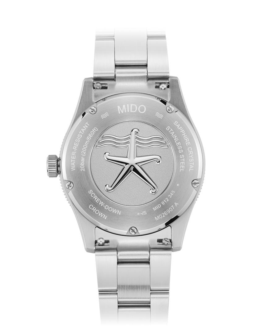 La casa di Le Locle ha proposto negli anni varie versioni dell’Ocean Star, dall’Ocean Star Decompression Timer (Rainbow) degli anni ’60 con impermeabilità fino a 300m per poi arrivare all’Ocean Star Diver 600 del 2019, resistente fino a 60 bar di pressione e con movimento COSC. Oggi come allora gli orologi con la stella marina sul fondello sono tra i più apprezzati dagli estimatori di Mido.